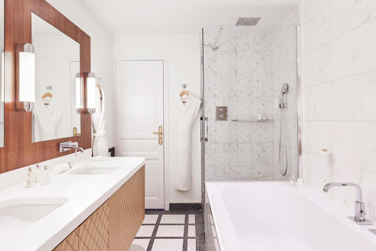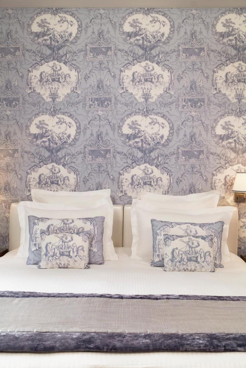 Les chambres et suites ont été magnifiquement rénovées, combinant le charme normand authentique avec un luxe contemporain et sobre. Elles sont célèbres pour leurs tissus et meubles personnalisés, incluant souvent de luxueux motifs de toile de Jouy revisités. De nombreuses chambres donnent sur la ville, les jardins intérieurs ou la mer.