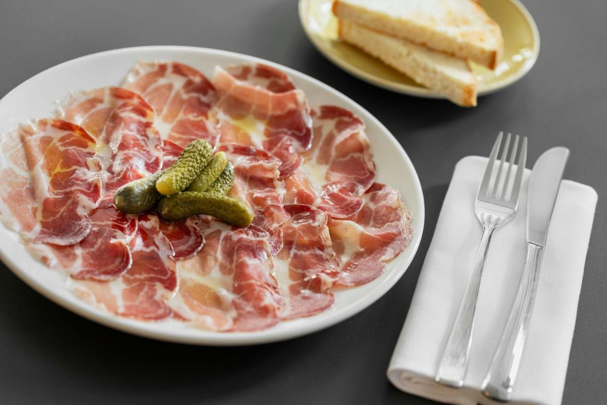 Un atout majeur est la grande cour intérieure transformée en un magnifique jardin, une oasis de verdure idéale pour la détente. Complétant les offres de bien-être, l'hôtel dispose d'un espace de fitness moderne et d'une piscine intérieure, garantissant aux clients la possibilité de maintenir leur routine physique ou simplement de se détendre après une journée de visites.