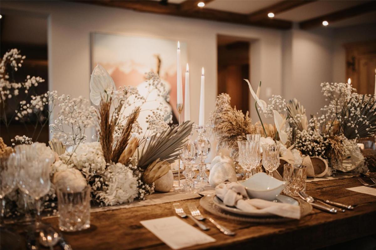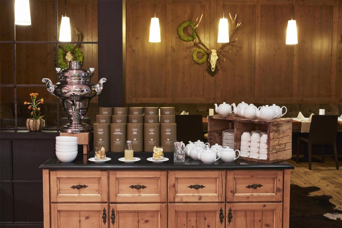 L'offre culinaire est du plus haut niveau. Le restaurant propose des plats gourmets qui combinent la cuisine internationale avec un fort accent sur les saveurs et les produits régionaux tyroliens. L'atmosphère élégante et le service impeccable font de l'expérience gastronomique un moment fort du séjour, célébrant la richesse culinaire des Alpes.