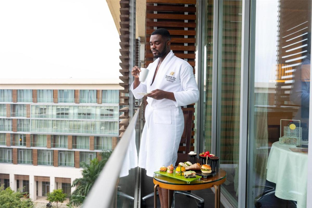Le Kempinski Hotel Gold Coast City est une référence pour le luxe et l'hospitalité internationale à Accra, situé dans le quartier des affaires et près du Centre de Conférences International. Cet hôtel 5 étoiles moderne est le choix principal pour les voyageurs d'affaires et de loisirs, offrant un équilibre parfait entre efficacité d'entreprise et détente exotique.
