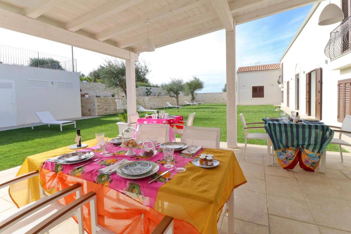 Le resort est entouré d'un vaste jardin méditerranéen, entretenu selon les principes de la permaculture, qui fournit une grande partie des produits pour la cuisine. La piscine, souvent conçue en harmonie avec l'environnement, est un lieu de détente qui se fond visuellement avec l'horizon rural. C'est l'idéal pour profiter du soleil sicilien dans un environnement de luxe écologique et réservé, où le temps semble ralentir.