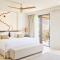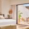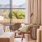 Les chambres et suites, spacieuses et lumineuses, sont meublées dans un style contemporain utilisant des matériaux naturels et des tons chauds. Chaque hébergement offre une terrasse privée avec vue sur les terrains de golf ou les jardins. Elles sont équipées de la climatisation, de la télévision par satellite, d'une machine à café Nespresso et du Wi-Fi gratuit. Le service en chambre est disponible 24h/24.