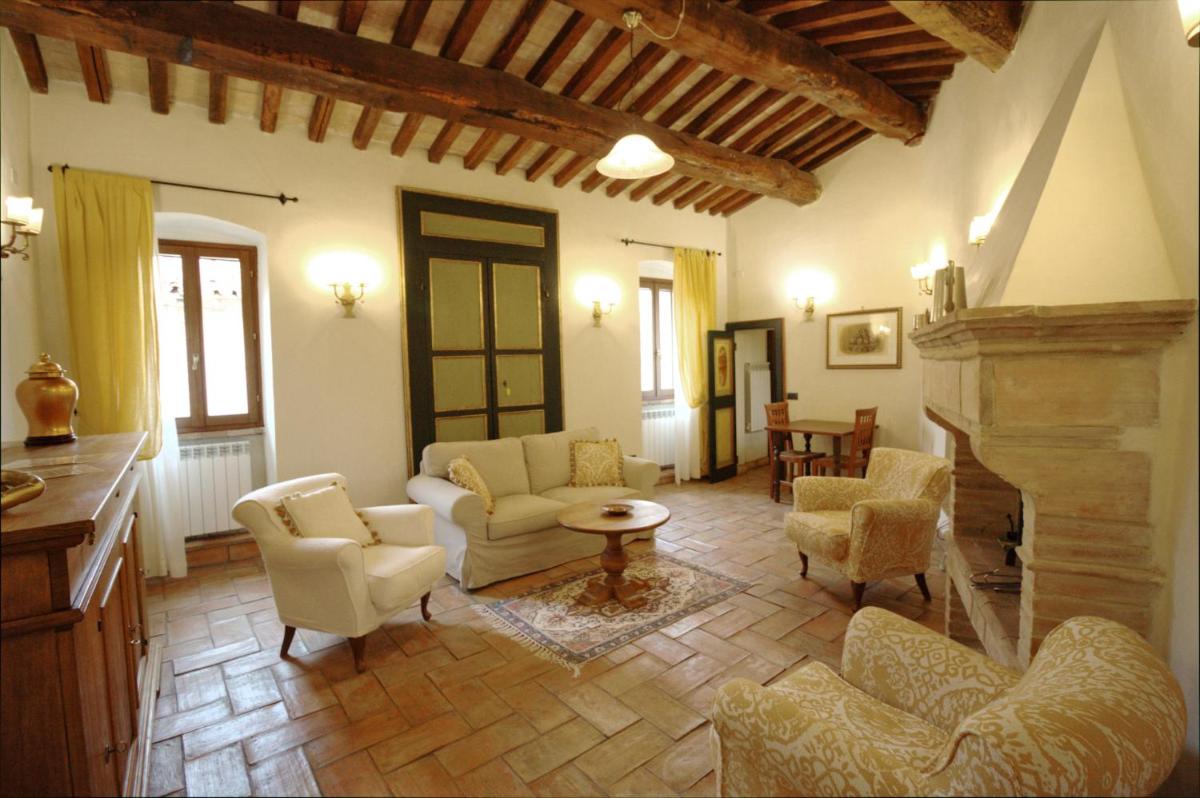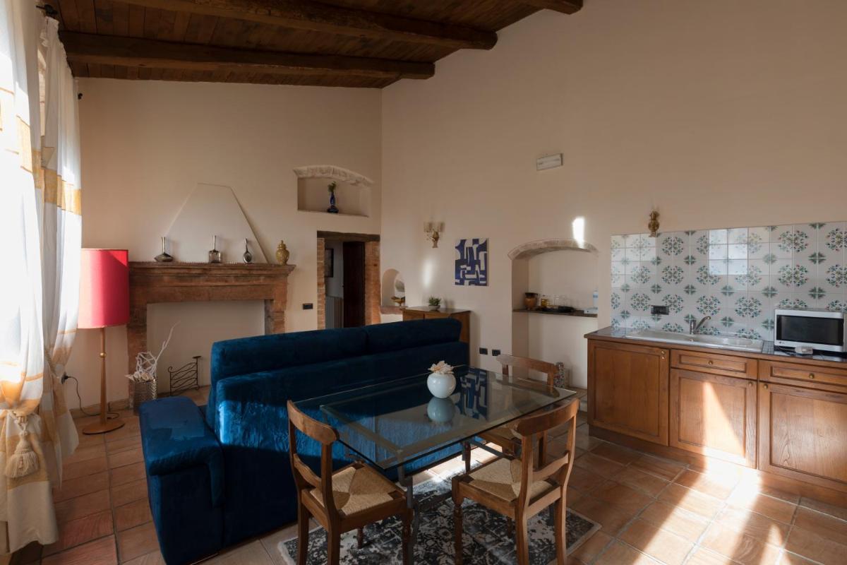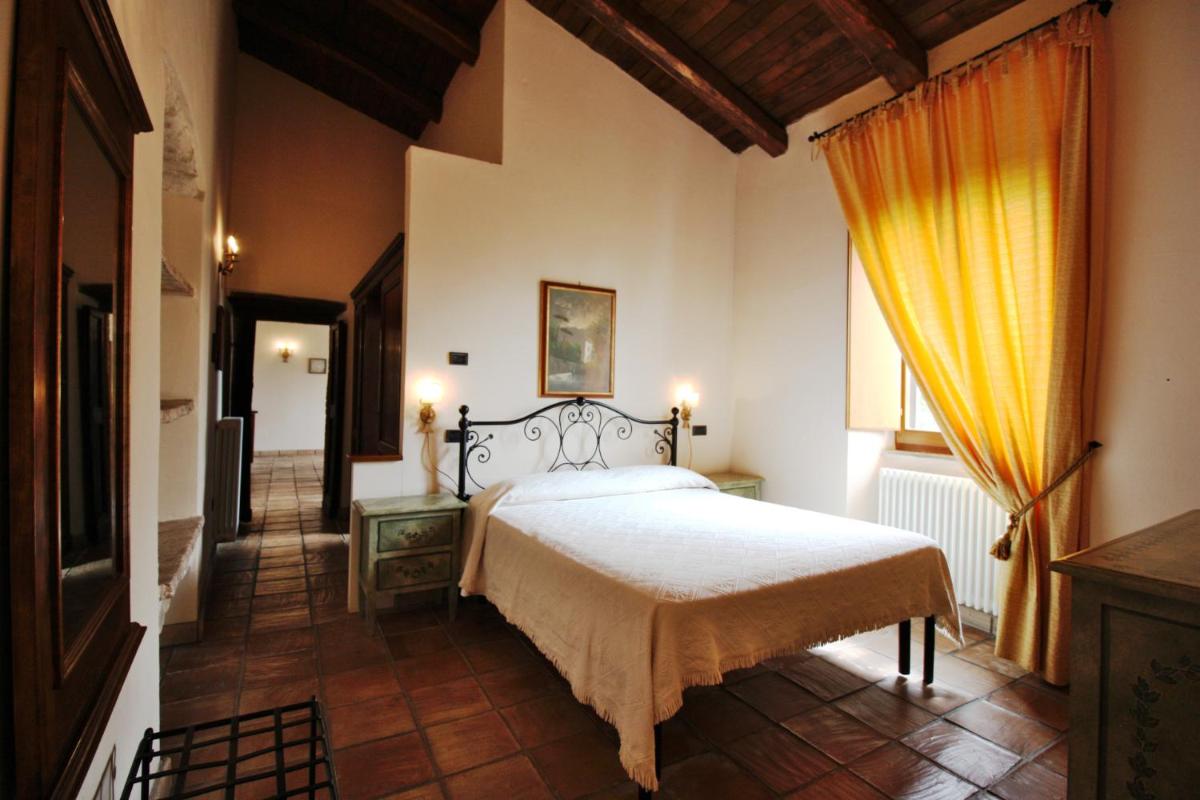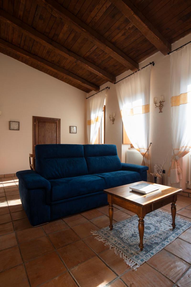 L’atmosphère du temps passé se retrouve dans les suites spacieuses, chacune unique et différente des autres, qui vantent par exemple des voûtes imposantes, cheminées, plafonds rustiques aux poutres apparentes ou encore le sol couvert de carreaux en terre cuits au four ou faits à la main. Sans oublier les mille détails précieux, pièces d’antiquités, céramiques d’art, objets de fer forgé, tissus provenant d’anciens métiers de Montefalco et bibelots de famille, qui renforcent encore l’ambiance d’une hospitalité chaleureuse.