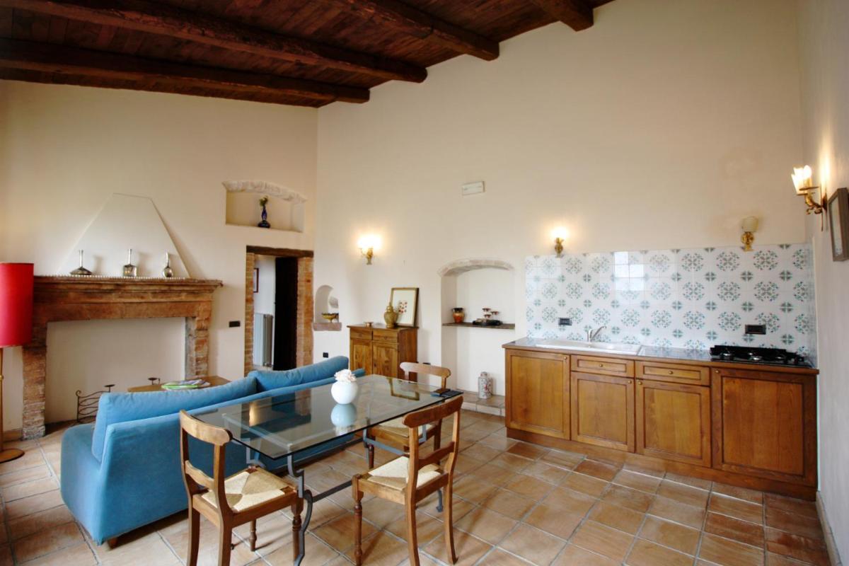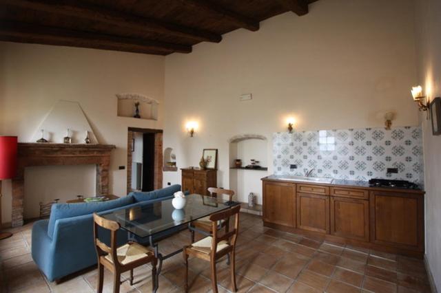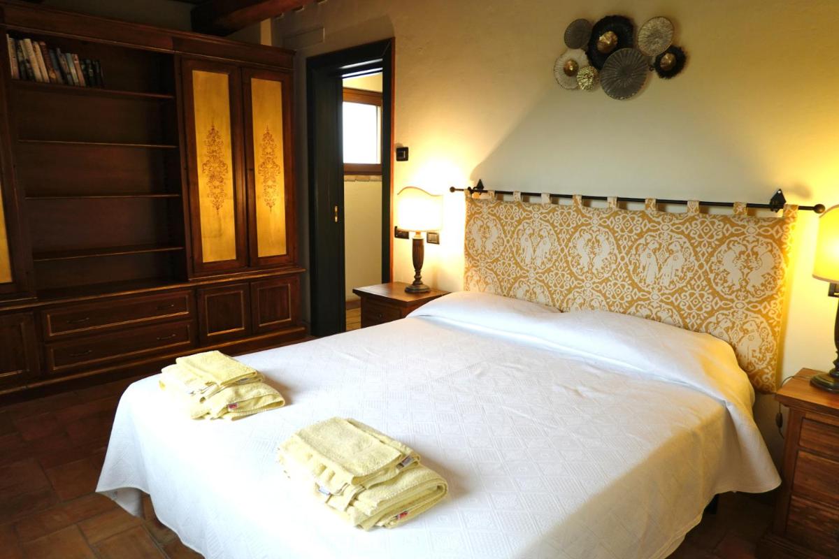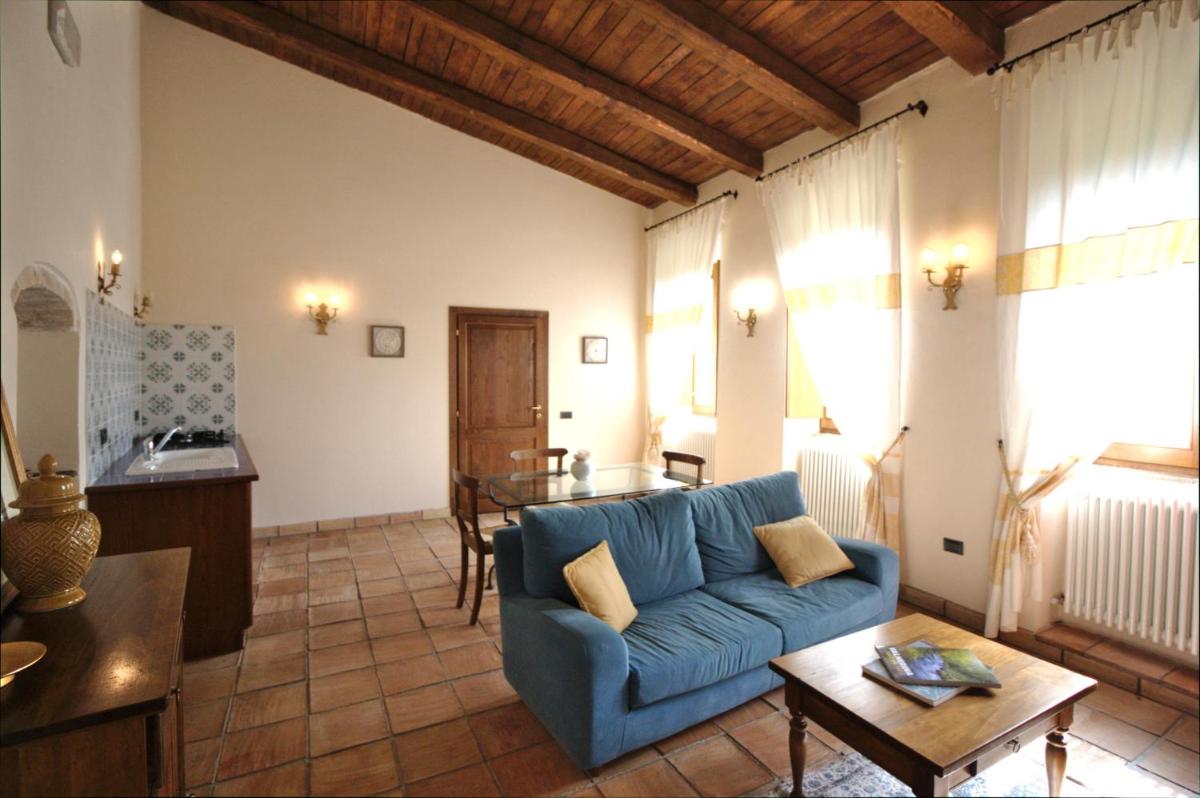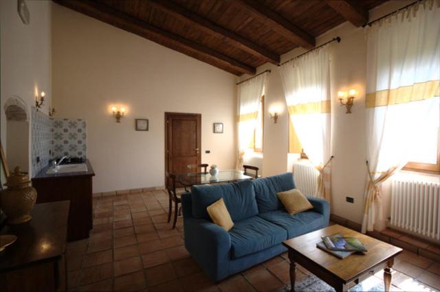 L’atmosphère du temps passé se retrouve dans les suites spacieuses, chacune unique et différente des autres, qui vantent par exemple des voûtes imposantes, cheminées, plafonds rustiques aux poutres apparentes ou encore le sol couvert de carreaux en terre cuits au four ou faits à la main. Sans oublier les mille détails précieux, pièces d’antiquités, céramiques d’art, objets de fer forgé, tissus provenant d’anciens métiers de Montefalco et bibelots de famille, qui renforcent encore l’ambiance d’une hospitalité chaleureuse.