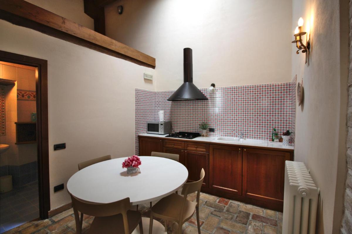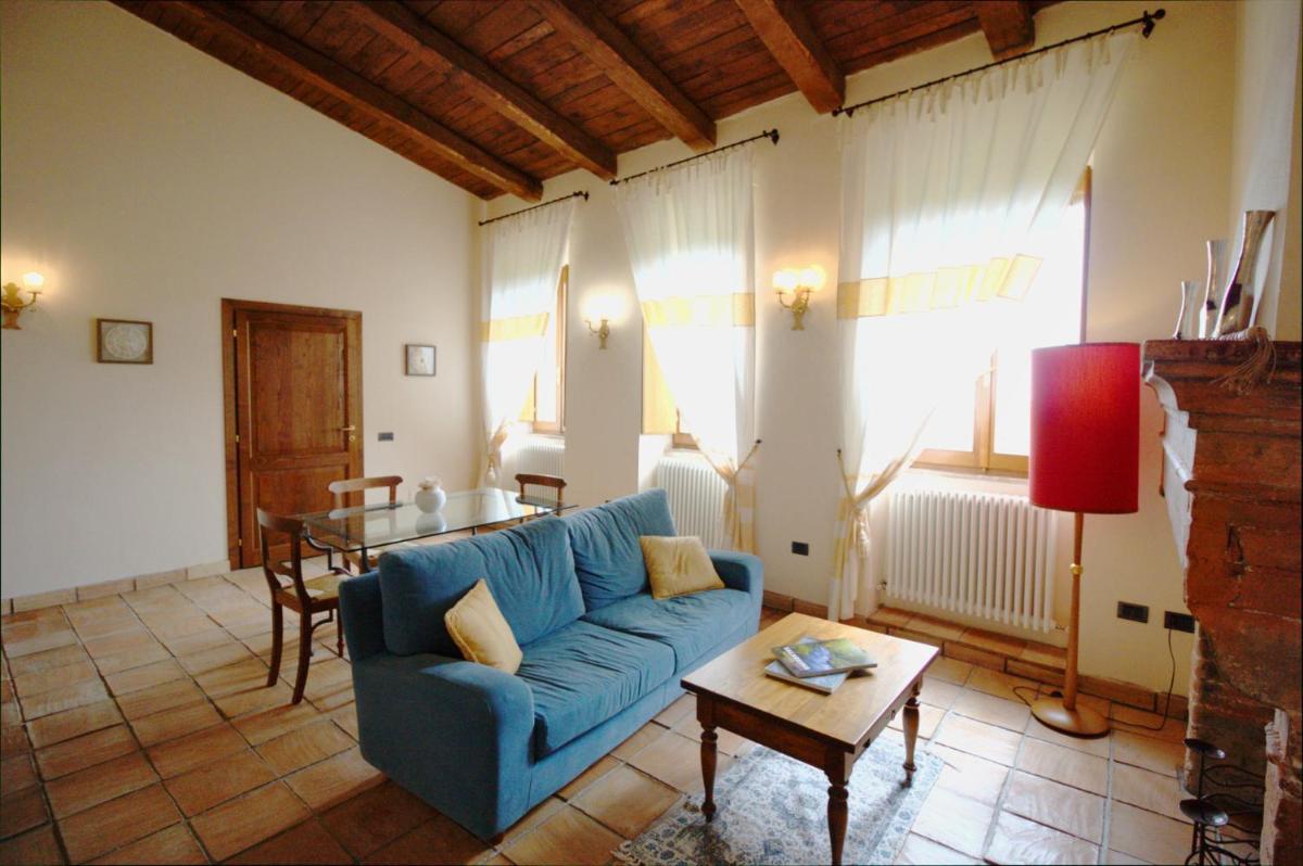 Il s’agit sans doute d’un des plus beaux exemples d’architecture médiévale de toute la contrée. Une magnifique galerie du XVe siècle à arcades, ‘le logge’, sur pilastres octogonaux en orne la façade sublime.