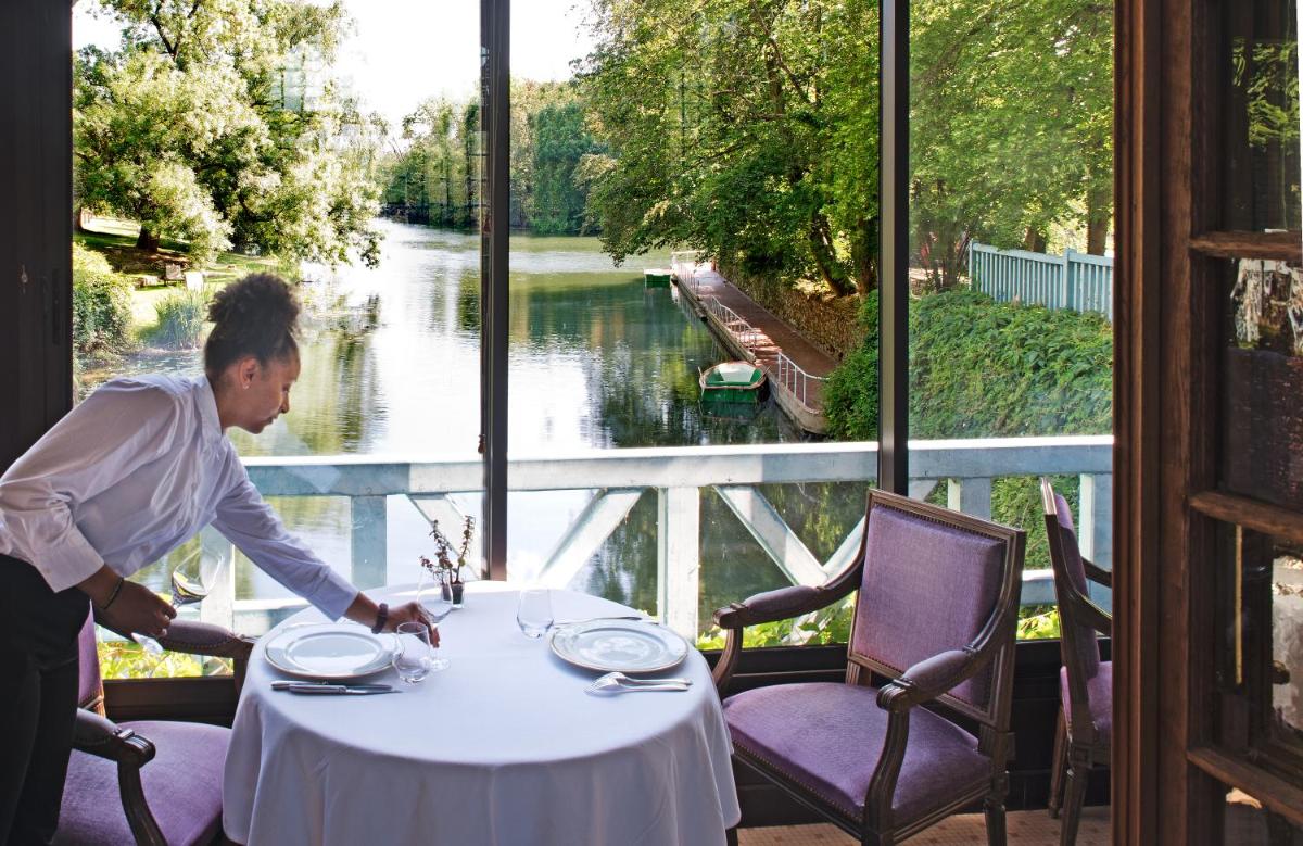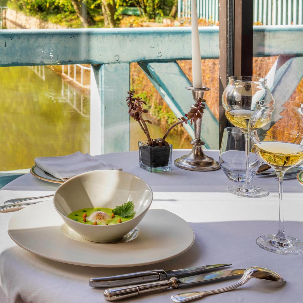 Le restaurant est la fierté de l'hôtel, où le chef propose une cuisine gourmande et raffinée basée sur les produits du terroir normand. L'expérience culinaire est intime, souvent servie à la lueur des bougies, avec la possibilité, pendant la belle saison, de déjeuner ou dîner en plein air, sur l'île du moulin au bord de l'eau, pour un moment inoubliable.