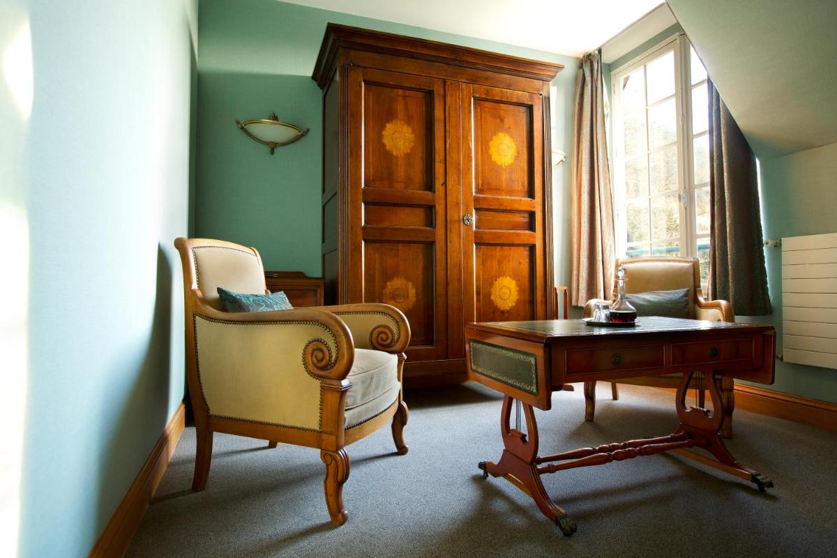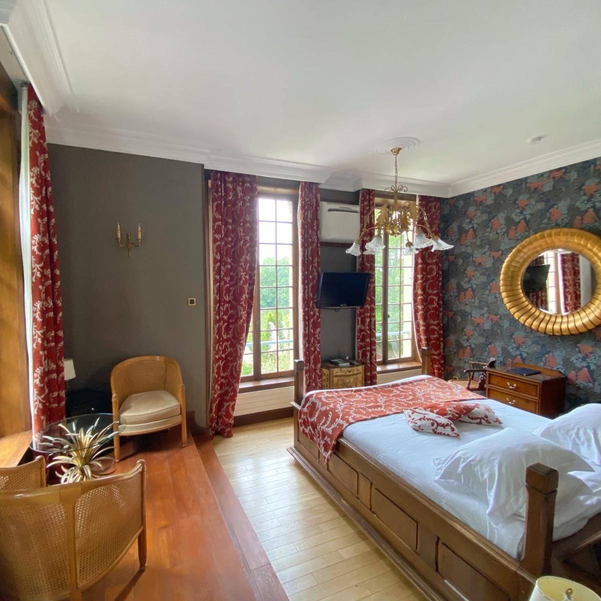 Les chambres et suites, réparties sur deux étages surélevés par rapport au fleuve, s'ouvrent sur des vues directes sur la Seine, la colline boisée ou l'île du moulin. Les hébergements ont été conçus pour le bien-être, offrant un confort moderne dans un cadre reposant; certains, comme la Junior Suite, comprennent un Jacuzzi privatif pour un luxe réservé et complet.