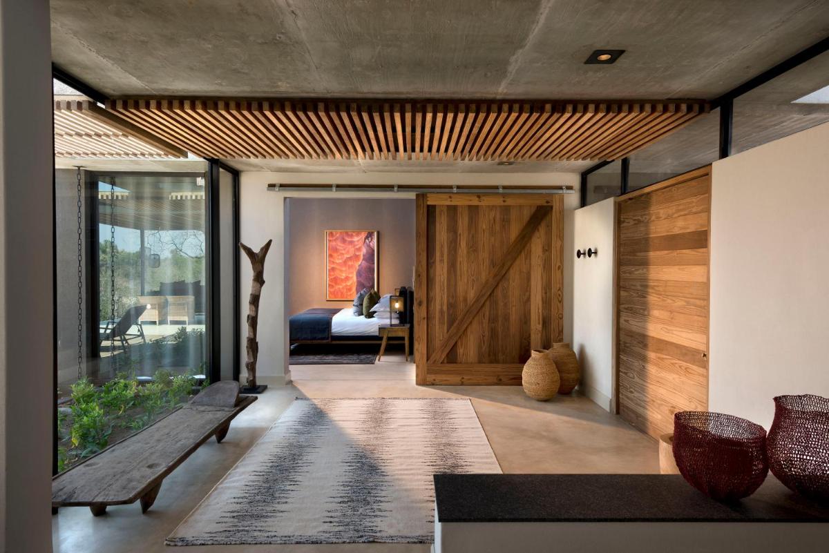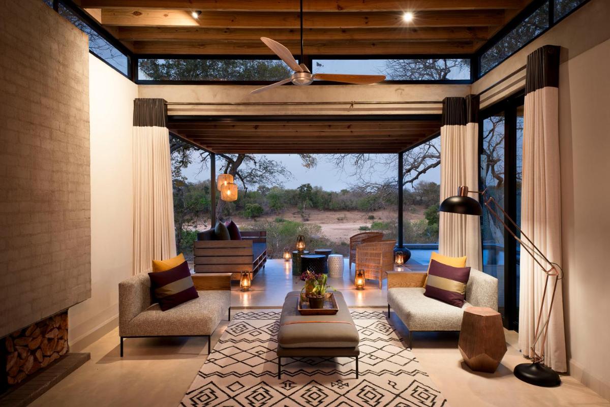 L'Ivory Lodge est célèbre pour son design contemporain audacieux, avec une architecture lumineuse et aérée. Les villas et suites sont incroyablement spacieuses, avec des piscines à débordement privées, des coins salon et des chambres qui s'ouvrent complètement sur le bush. Le design minimaliste et raffiné est conçu pour mettre en valeur la beauté de la nature environnante.