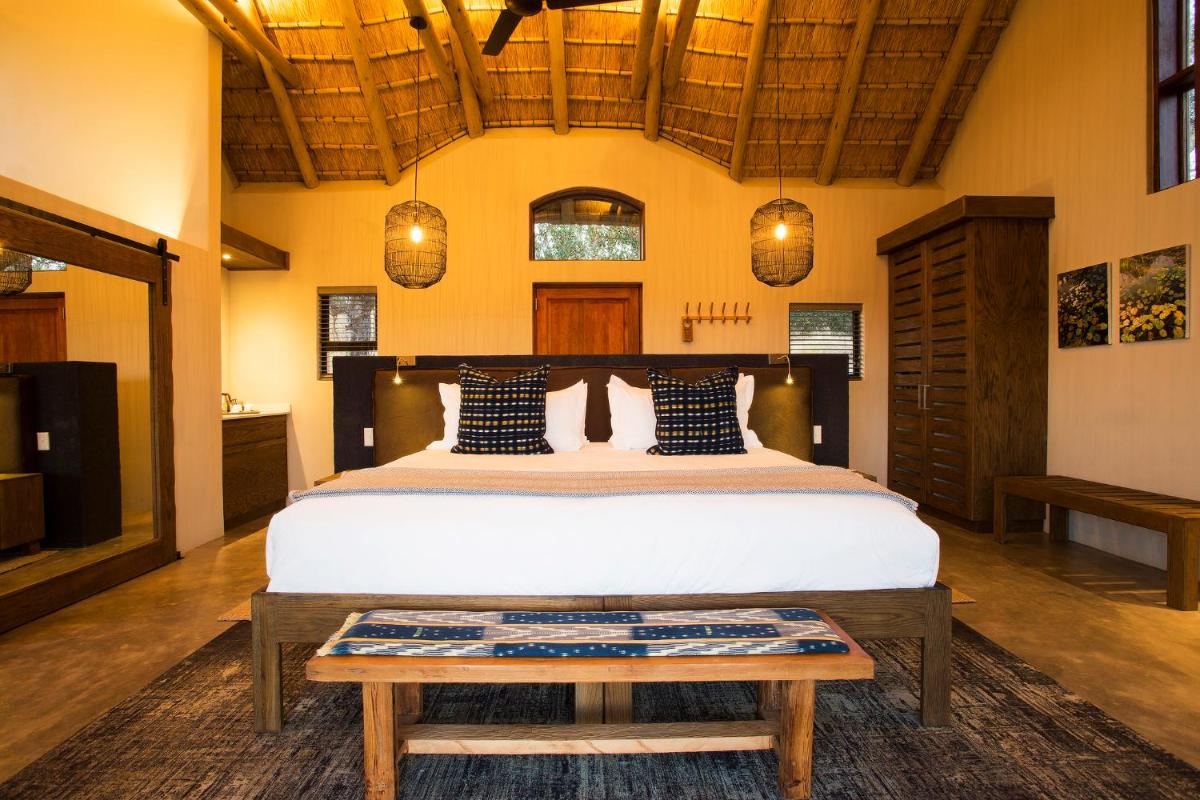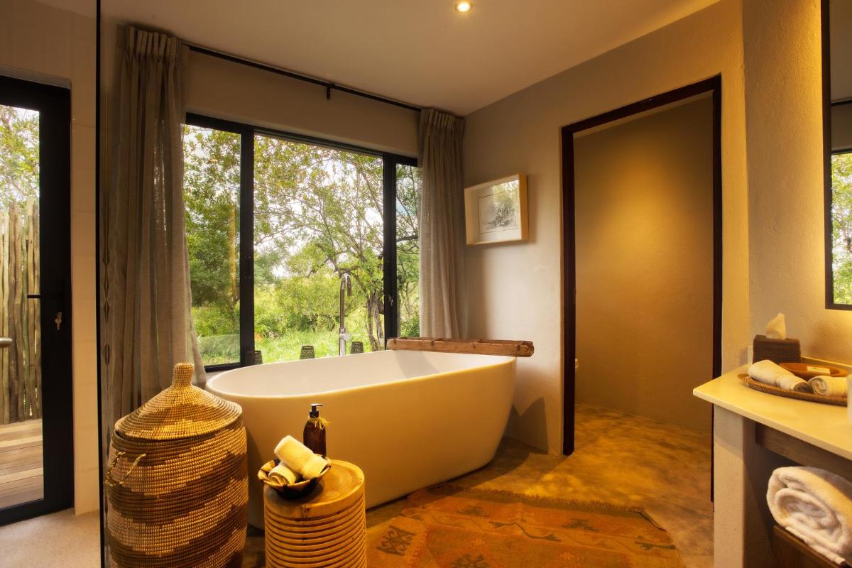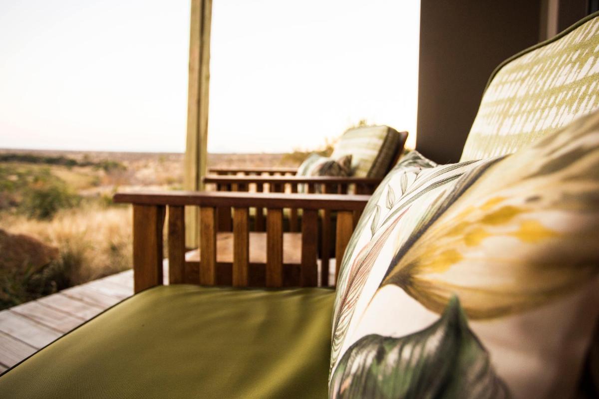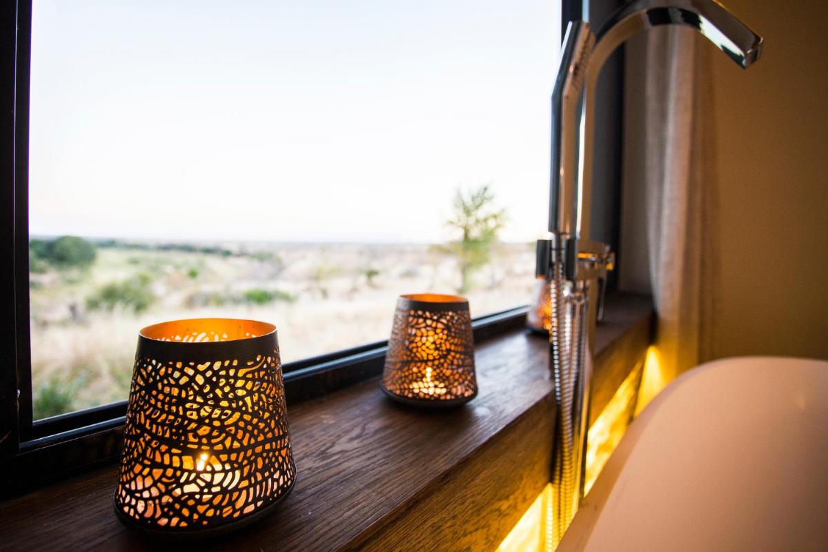 Le camp est conçu pour être en harmonie avec son environnement, utilisant des matériaux locaux et un design qui privilégie la vue sur la nature. Les tentes/chalets sont luxueuses, mais conservent une atmosphère de camp authentique, avec des salles de bains extérieures optionnelles et des terrasses privées donnant sur la savane. L'atmosphère est détendue et familiale.