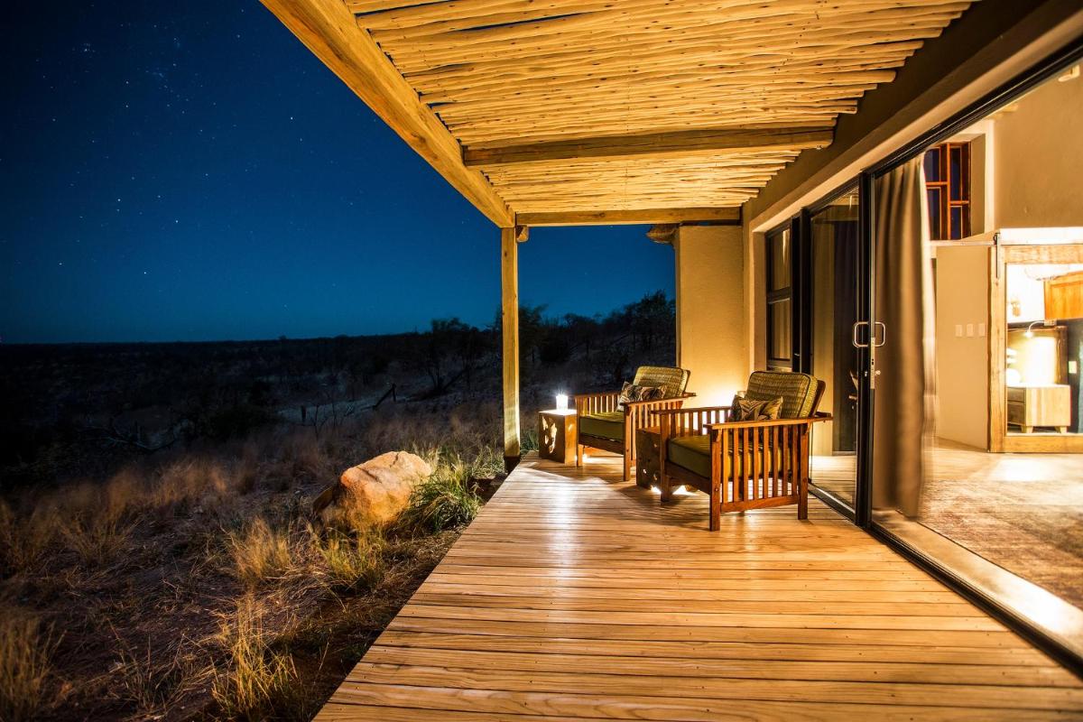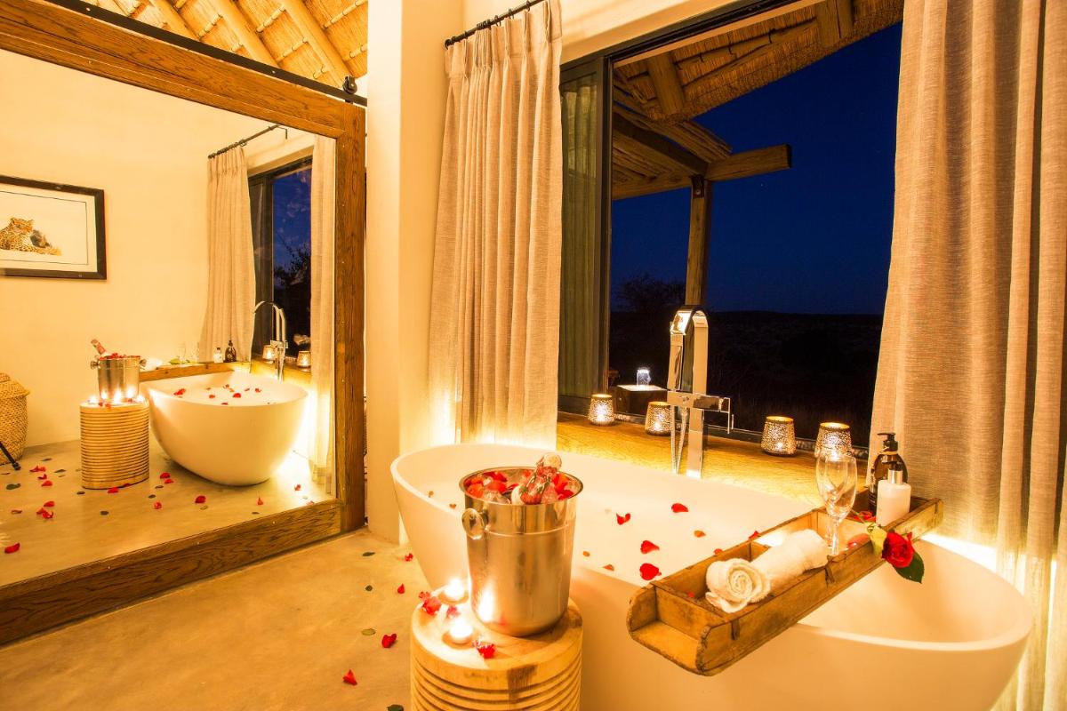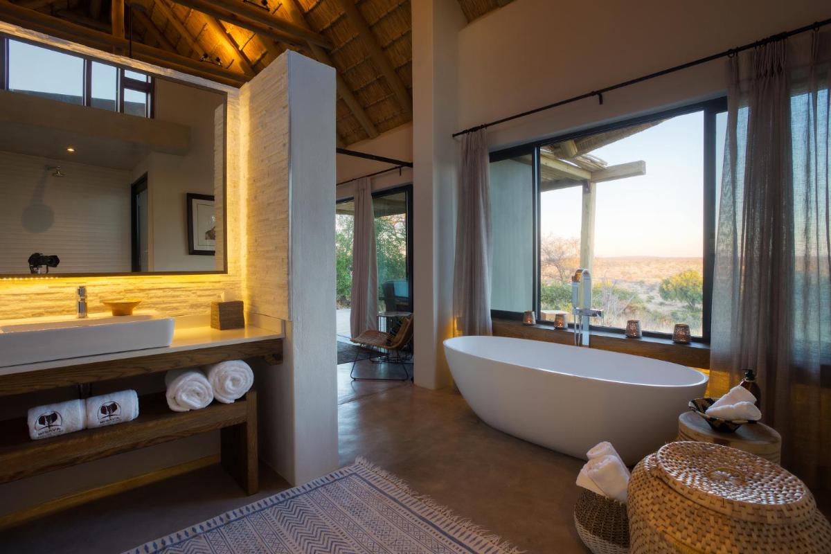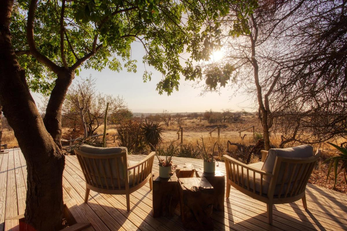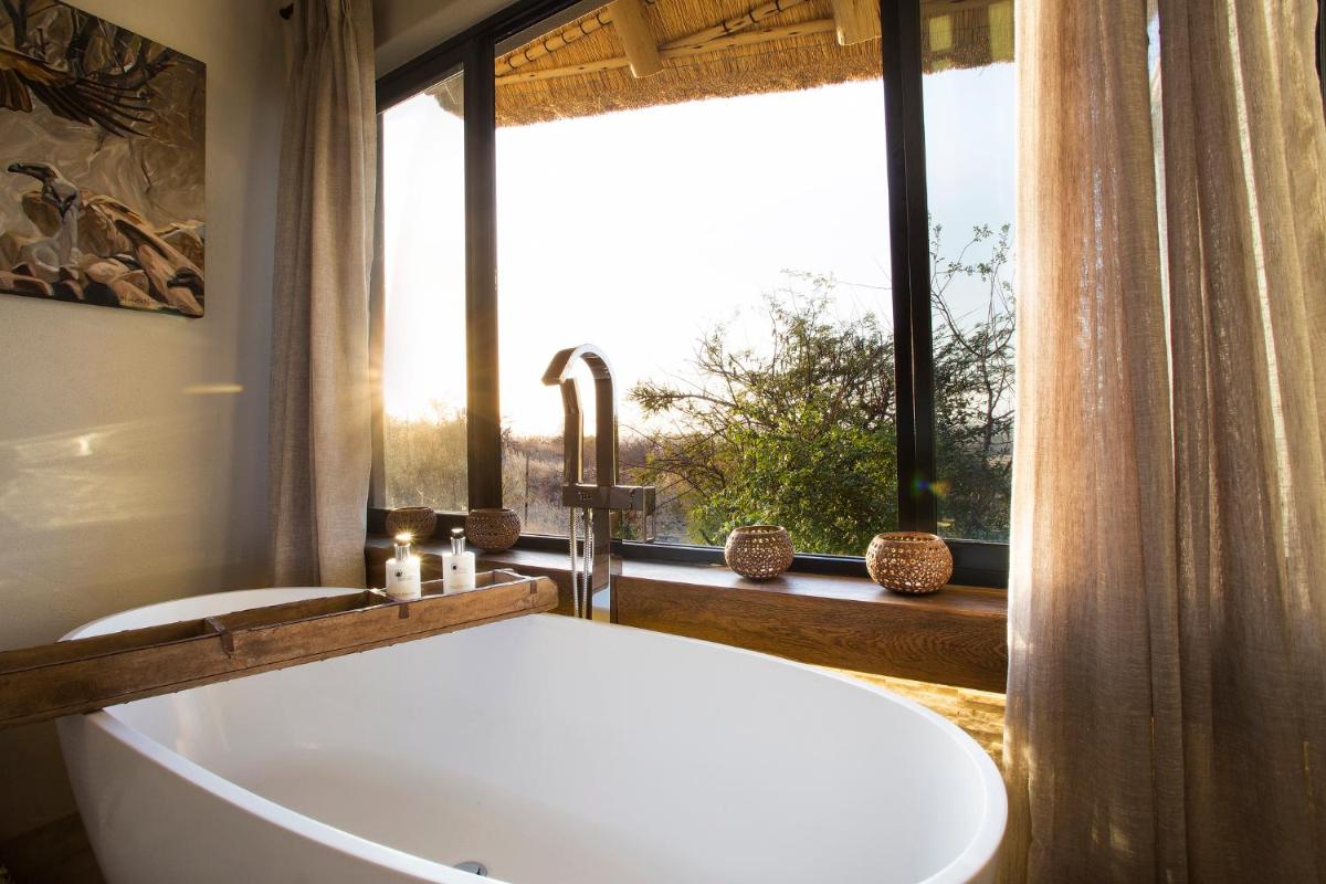 Le camp est conçu pour être en harmonie avec son environnement, utilisant des matériaux locaux et un design qui privilégie la vue sur la nature. Les tentes/chalets sont luxueuses, mais conservent une atmosphère de camp authentique, avec des salles de bains extérieures optionnelles et des terrasses privées donnant sur la savane. L'atmosphère est détendue et familiale.