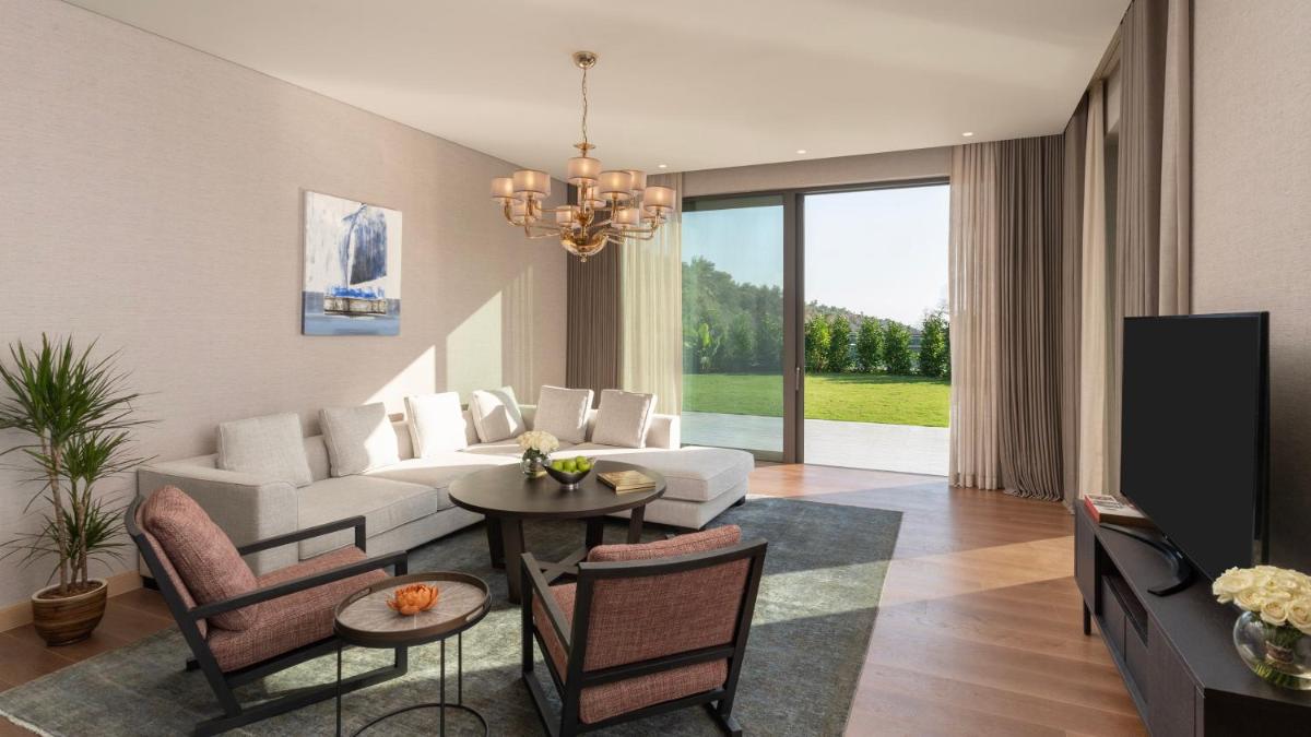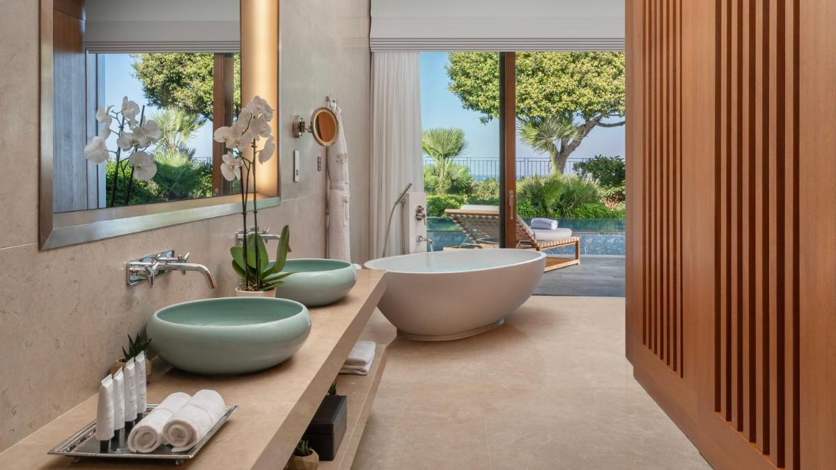 Les hébergements sont parmi les plus grands de la région et présentent un design frais, contemporain et méditerranéen. Chaque chambre, suite et villa est dotée d'un balcon ou d'une terrasse, garantissant une vue imprenable sur la mer, et beaucoup comprennent des jardins privés et des piscines à débordement privées, offrant une intimité et une opulence maximales.