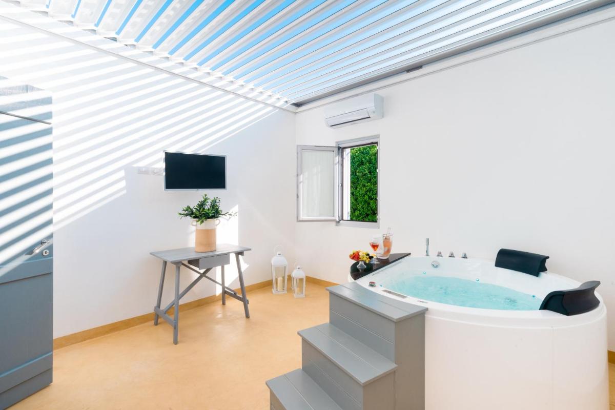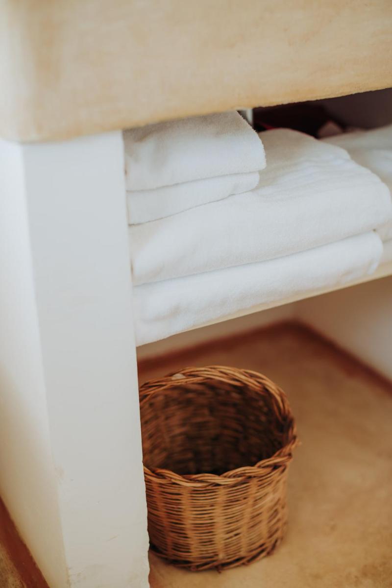 Les chambres et appartements sont aménagés dans les anciennes étables et entrepôts et sont décorés dans un style rustique typique, avec des murs en pierre apparentes et des meubles simples mais élégants. Chaque unité est climatisée, équipée d'une télévision et d'une salle de bains privée fonctionnelle. Certains logements comprennent une kitchenette, offrant plus de flexibilité. L'atmosphère est de chaleureuse hospitalité et de sérénité.
