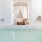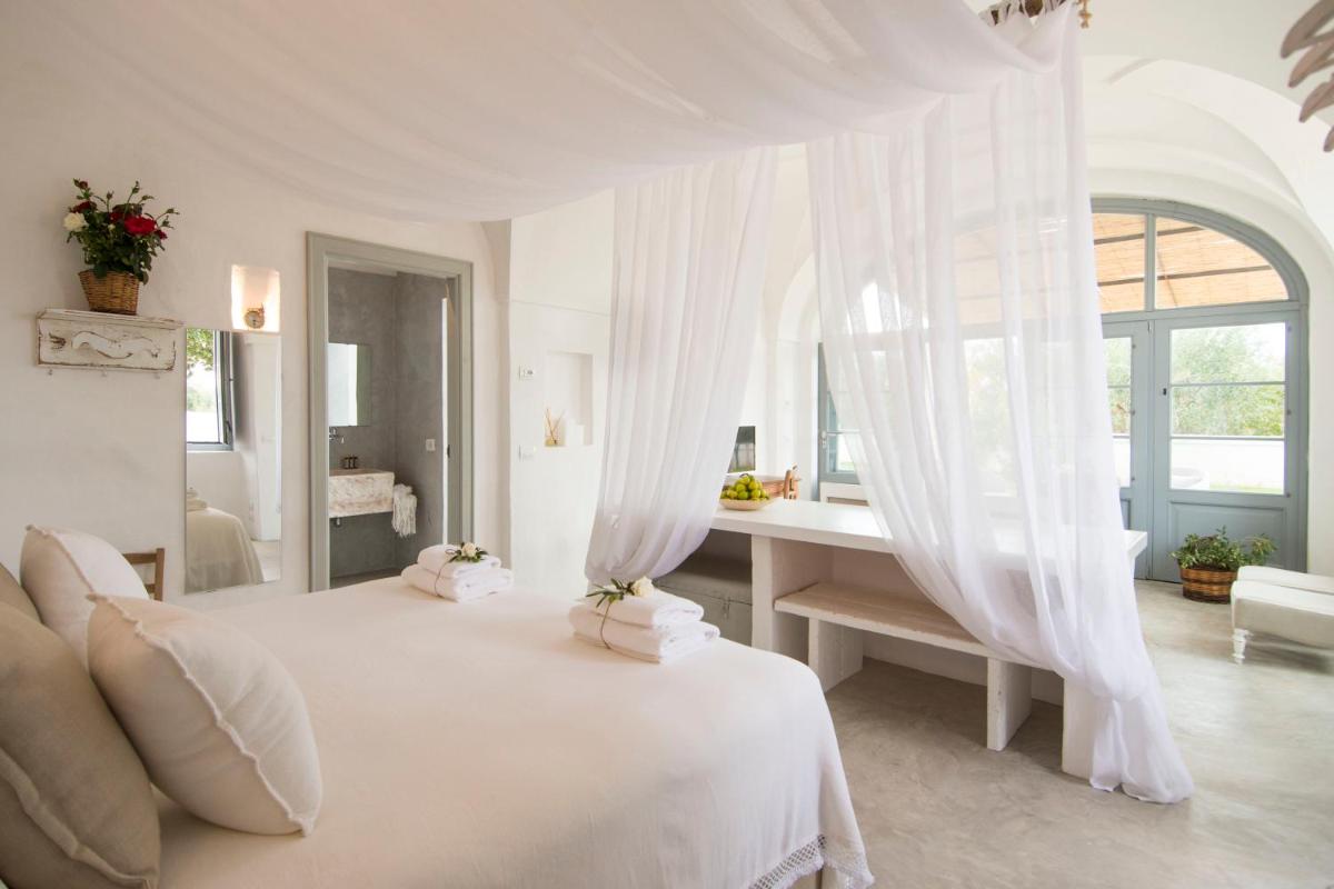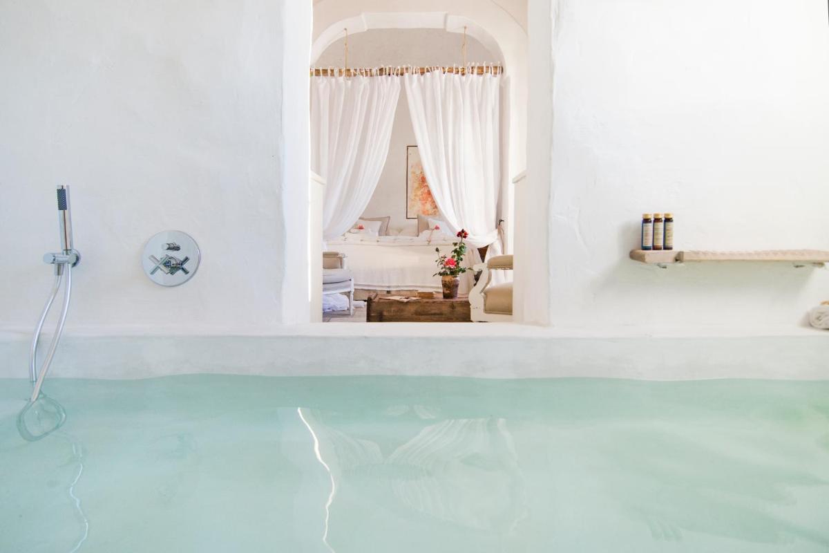 Les chambres et suites sont caractérisées par un design rustique-chic, qui met en valeur les voûtes en étoile, les sols en pierre et le mobilier fabriqué avec des matériaux locaux. Tous les logements offrent la climatisation, la télévision par satellite, un minibar et une salle de bains privée de designer. Beaucoup offrent une vue suggestive sur le jardin méditerranéen ou la piscine, garantissant une atmosphère de détente totale.