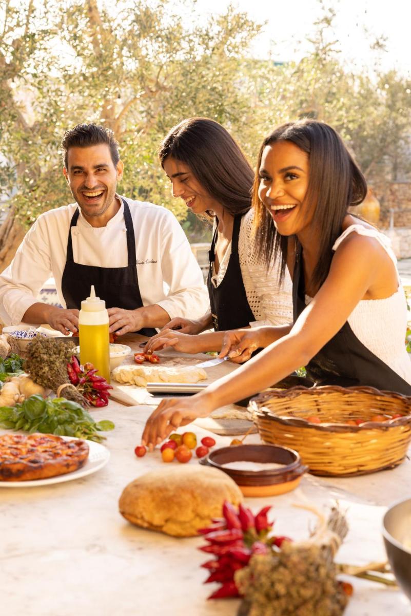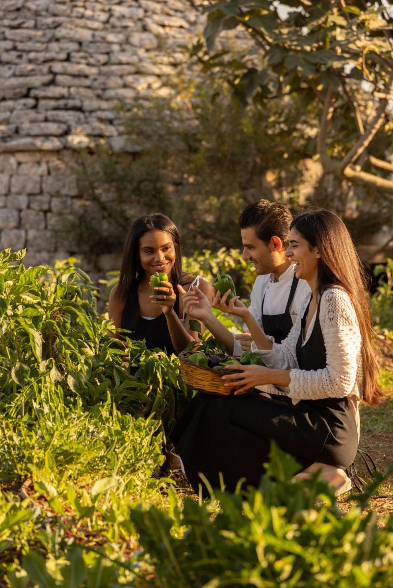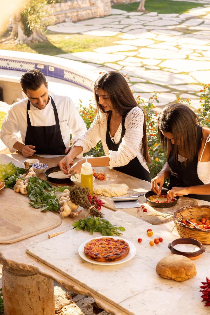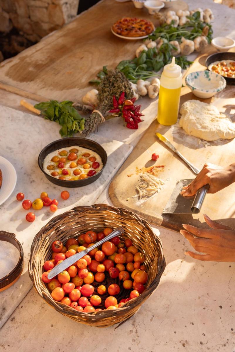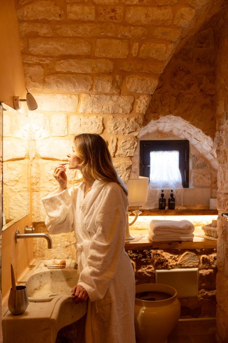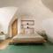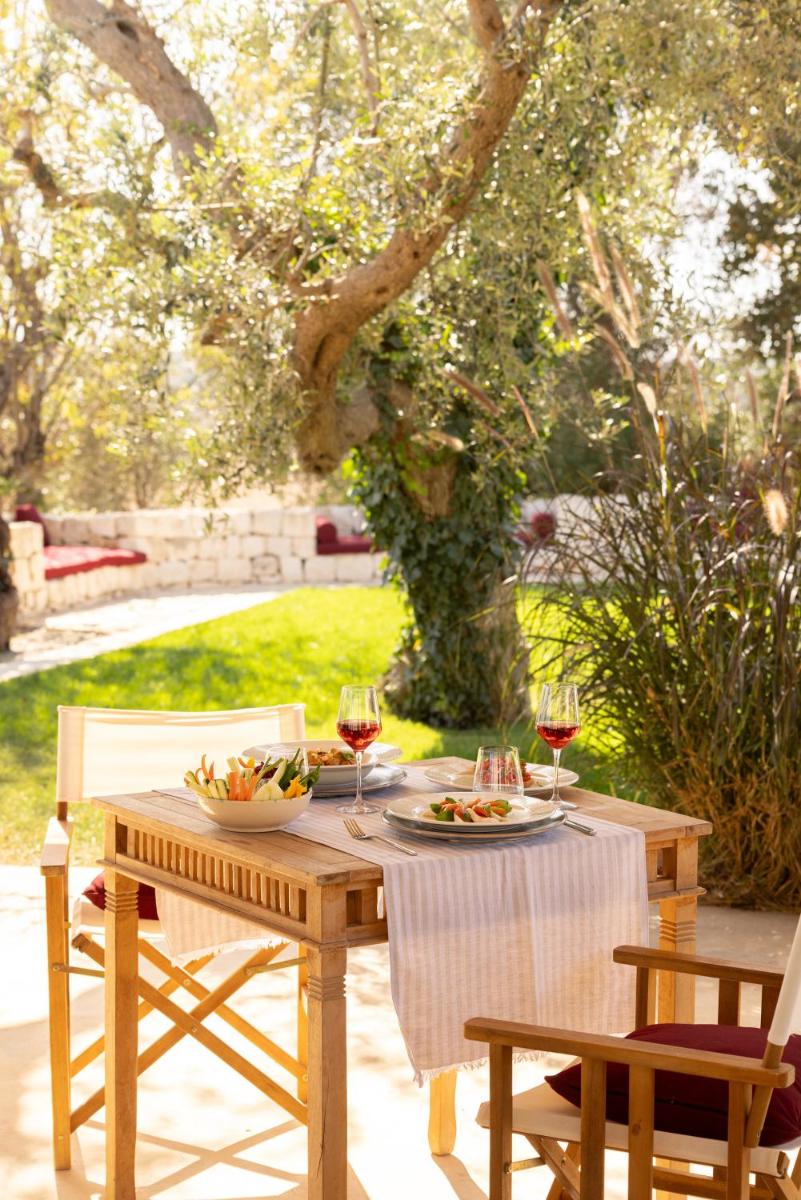 Espaces lumineux et aérés qui prolongent le plan de la masseria avec mobilier sobre et détails fonctionnels. Les ouvertures cadrent cours, jardins d’agrumes et lignes rurales.