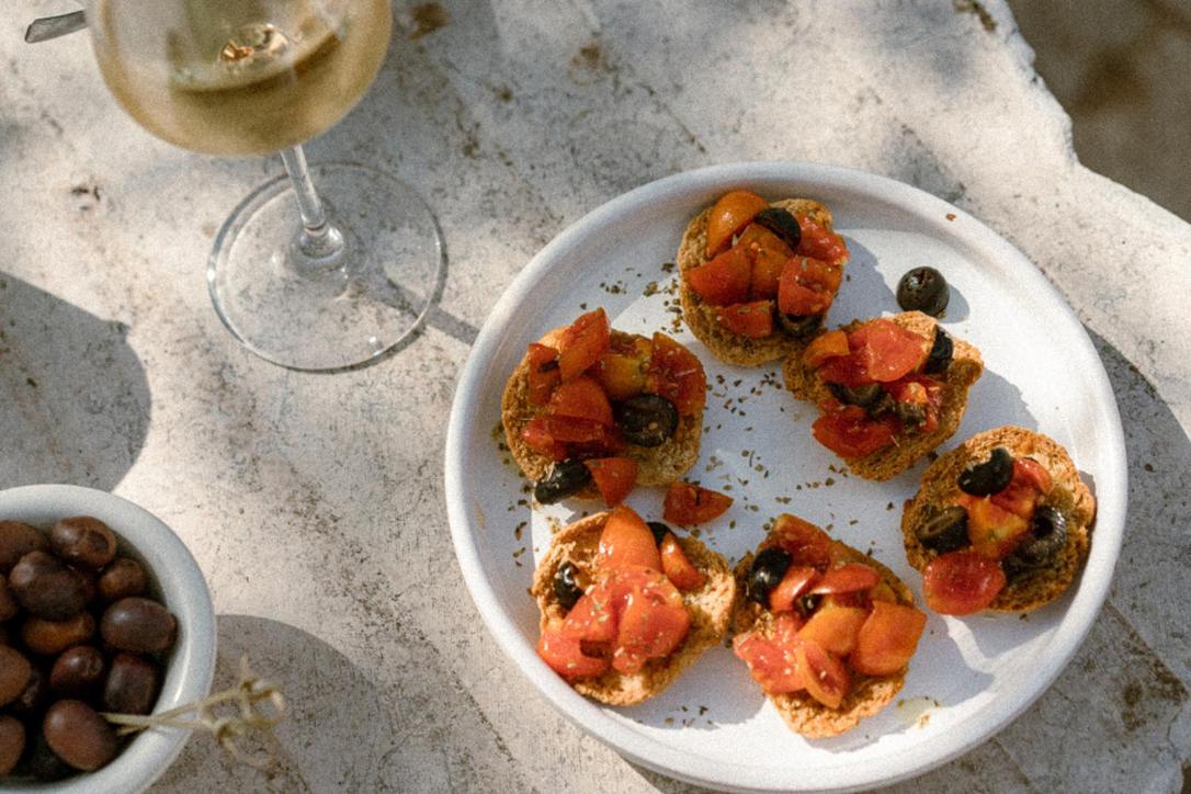Huiles locales, pains de blé dur et fruits de saison ouvrent la journée avec franchise. C’est l’heure de tracer des marches le long des murets de pierre sèche.