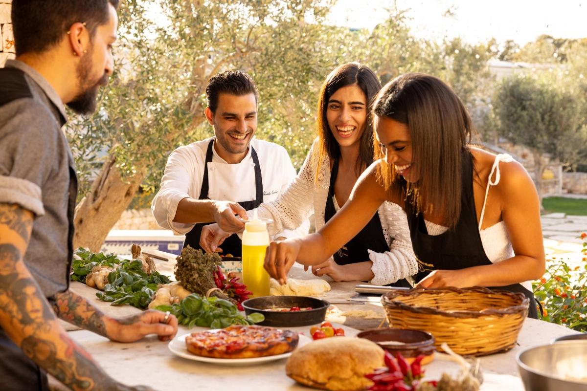 Dans la campagne d’Ostuni, la Masseria San Paolo Grande préserve des cours claires, des pergolas et d’anciens cheminements entre oliviers monumentaux. La lumière glisse sur la pierre et rejoint des intérieurs essentiels où bois, chaux et textiles naturels gardent un ordre mesuré. Le séjour adopte un pas lent : matinées de campagne, marches entre les rangs d’oliviers et retours du soir sous un ciel rosé. La position alterne ruelles blanches d’Ostuni, oliveraies séculaires et Adriatique à quelques kilomètres. Une hospitalité discrète qui laisse matière et paysage mener le récit.
