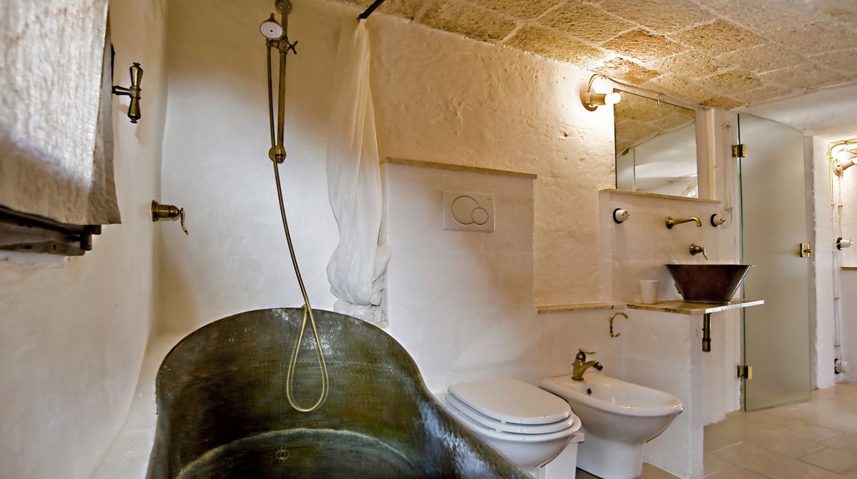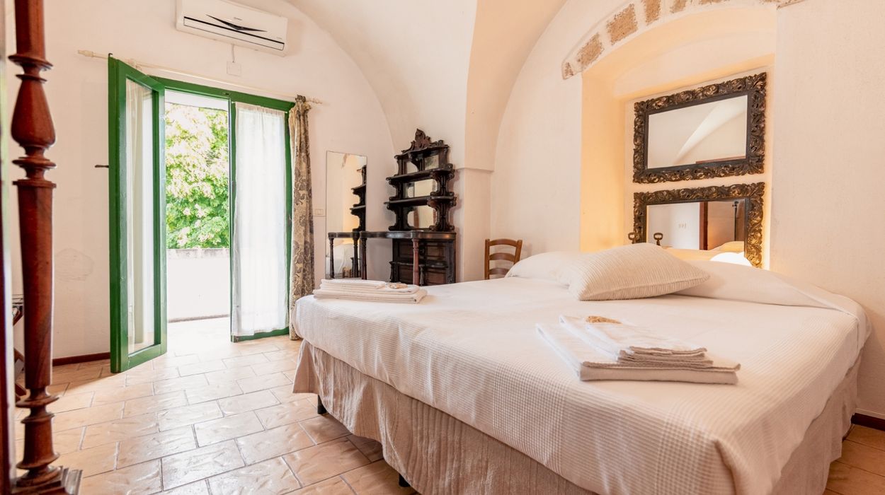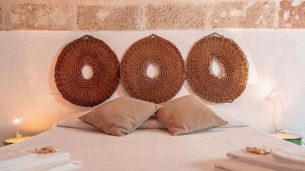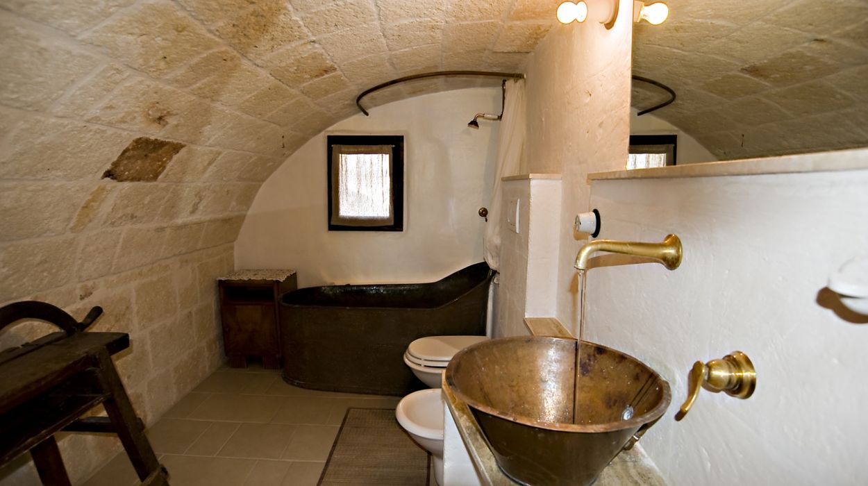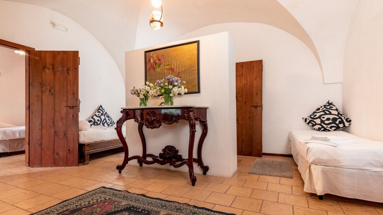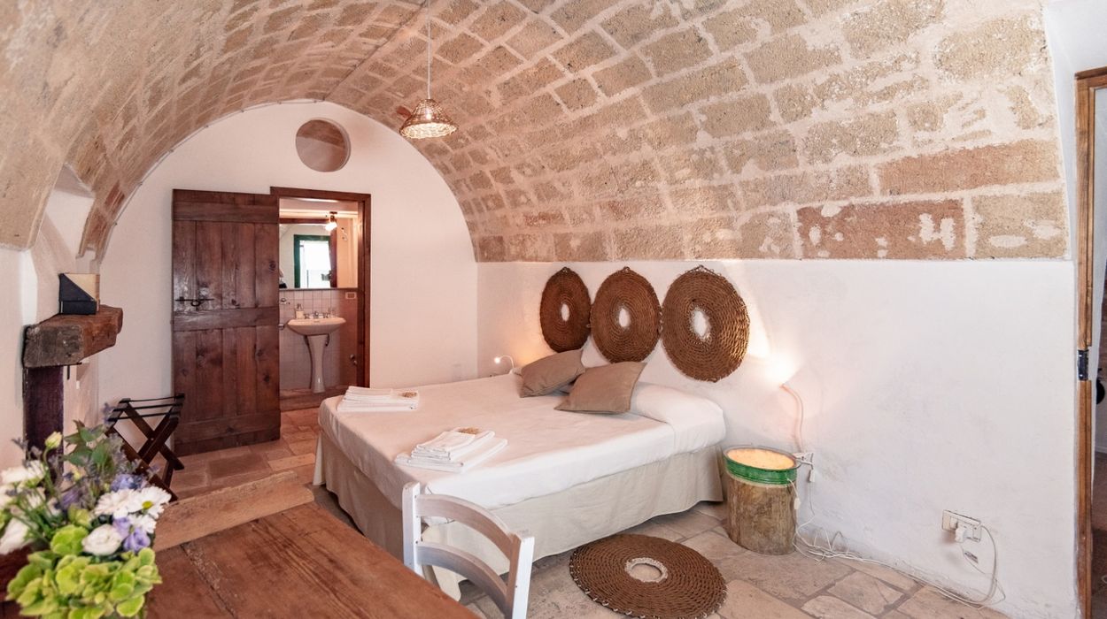 Le resort propose différentes options d’hébergement aménagées dans les structures anciennes, toutes caractérisées par un design rustique et élégant, avec des murs en pierre apparente et un mobilier d’époque. Les hôtes peuvent choisir parmi :