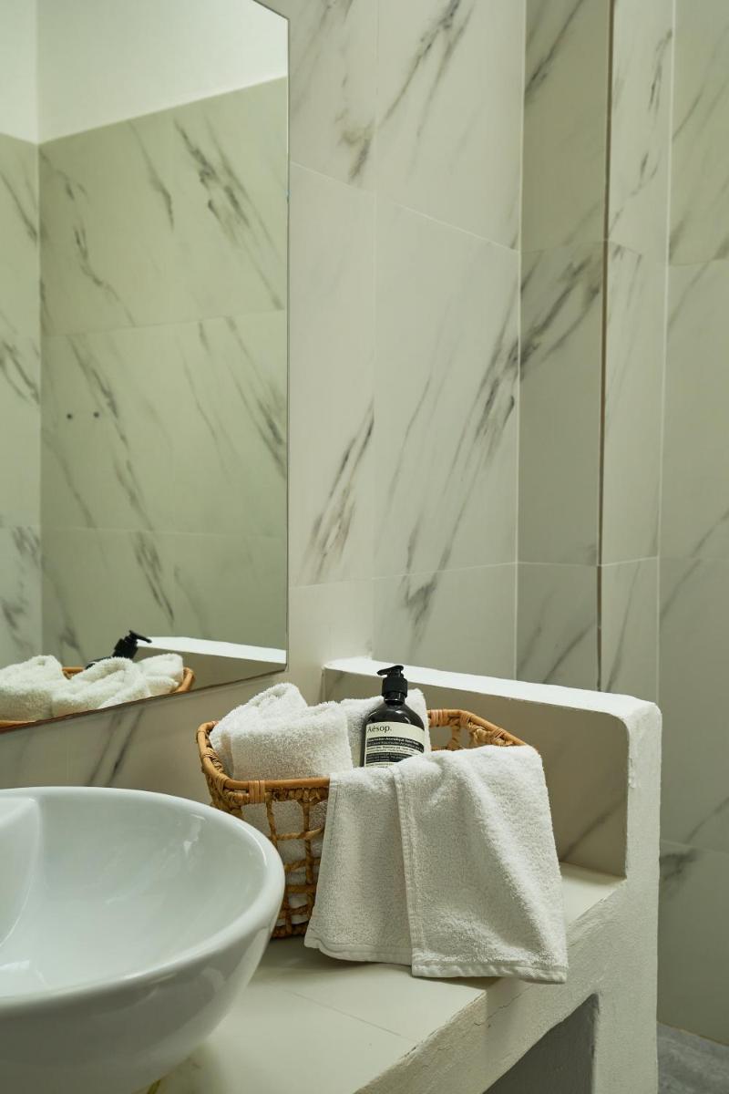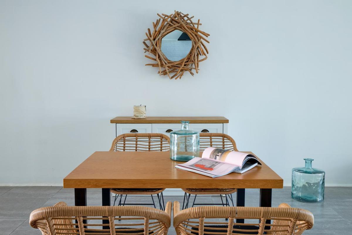 Les villas sont construites selon les principes de l'architecture organique, utilisant la pierre locale et le bois. Une particularité de Mea Terra est son design bioclimatique, qui permet de profiter d'une fraîcheur naturelle constante. Les intérieurs sont spacieux e inondés de lumière, avec un mobilier minimaliste rappelant les couleurs de la terre et du sel.