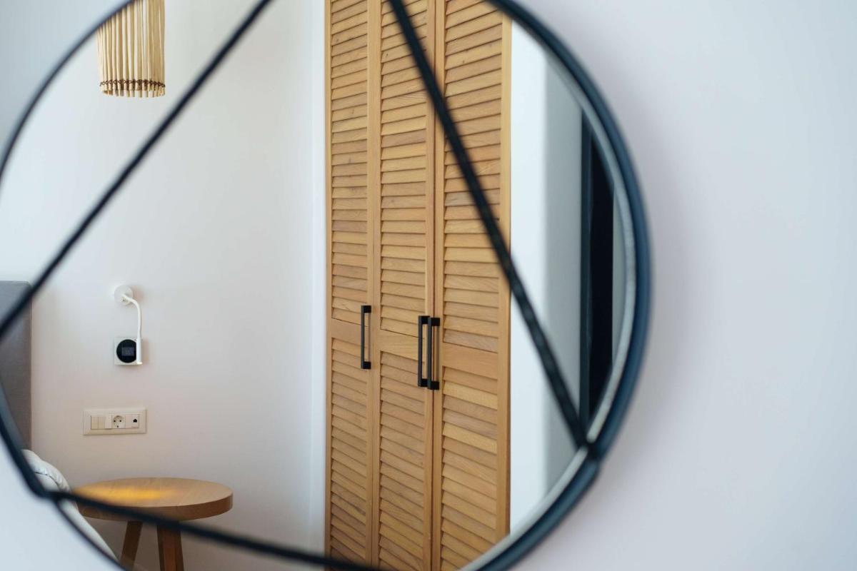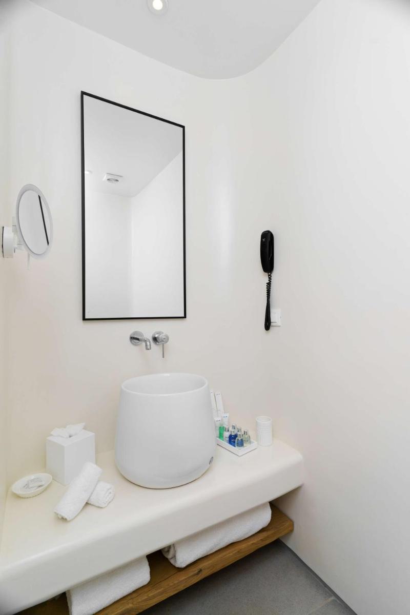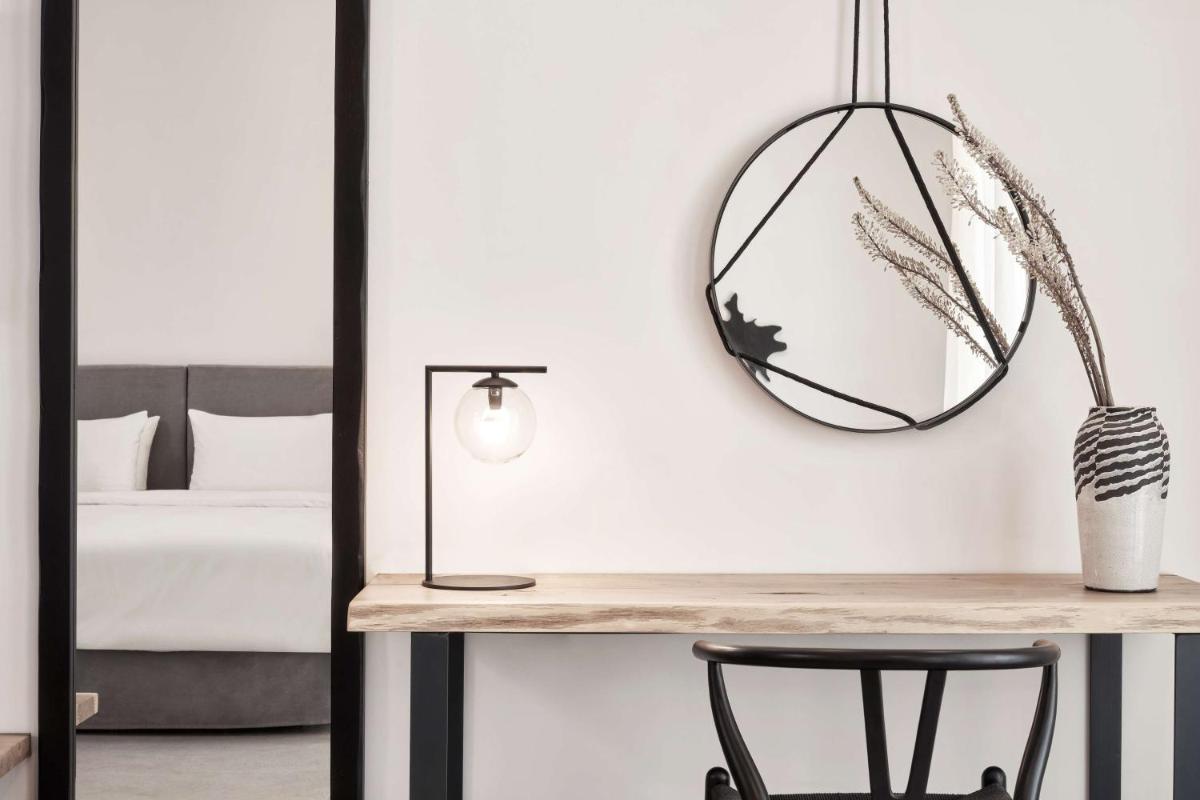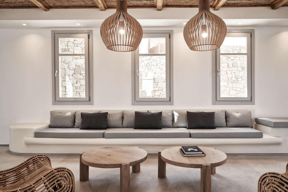 Les chambres et les suites ont été conçues en pensant à la détente et à l'élégance. Caractérisées par un design minimaliste et luxueux, avec des touches de couleur et des matériaux naturels locaux, elles offrent des espaces lumineux et aérés. De nombreux hébergements de catégorie supérieure incluent des piscines ou Jacuzzis privés sur la terrasse, d'où il est possible de profiter du célèbre coucher de soleil de Mykonos en toute intimité.