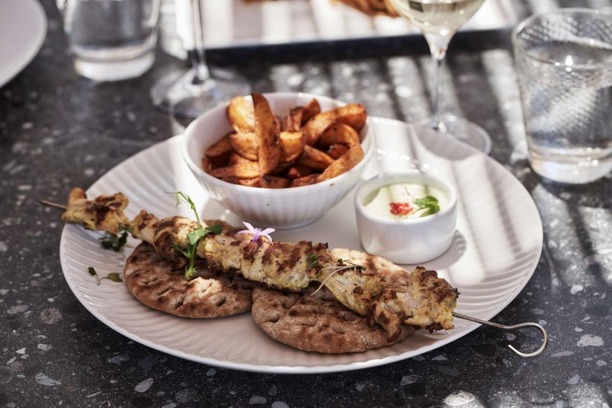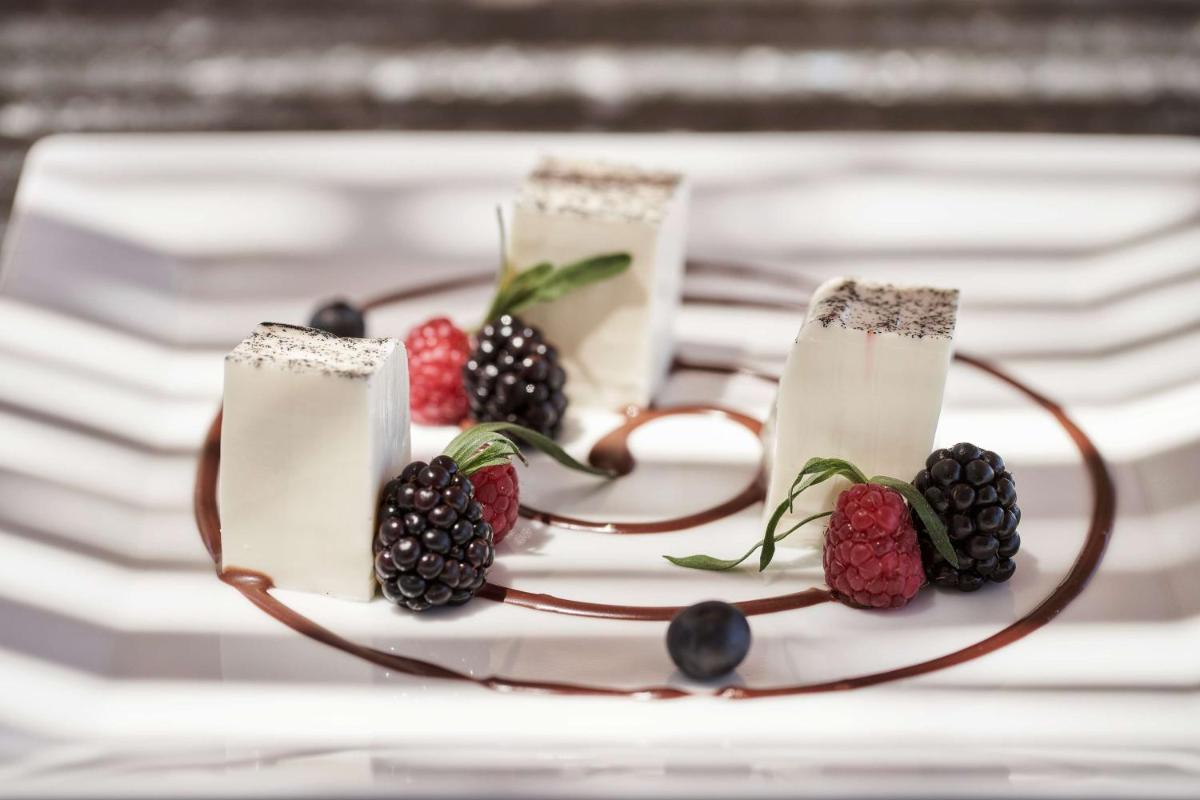 La proposition culinaire combine les saveurs de la cuisine grecque traditionnelle avec des influences internationales et fusion, offrant une expérience gastronomique variée et de haute qualité. Le restaurant principal utilise des produits frais et durables, souvent axés sur la pêche du jour. Les hôtes peuvent profiter de dîners élégants avec vue sur la mer, dans un environnement qui équilibre l'élégance formelle avec l'atmosphère détendue de l'île.