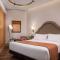 L’hébergement comprend une salle de bains en marbre indien pourvue d’un sèche-cheveux professionnel, d’articles de toilette et d’une douche à effet pluie ou d’une baignoire.