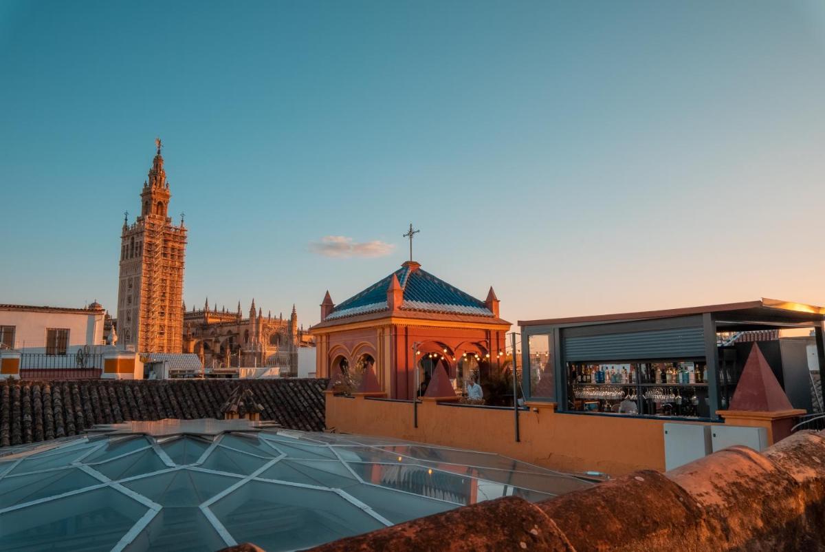L'une de ses principales attractions est la terrasse sur le toit, qui offre des vues panoramiques spectaculaires sur les toits du centre historique, en particulier la Cathédrale et la Giralda voisine. C'est l'endroit idéal pour prendre un apéritif au coucher du soleil dans un environnement de luxe et d'histoire.