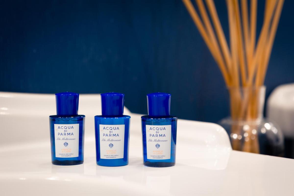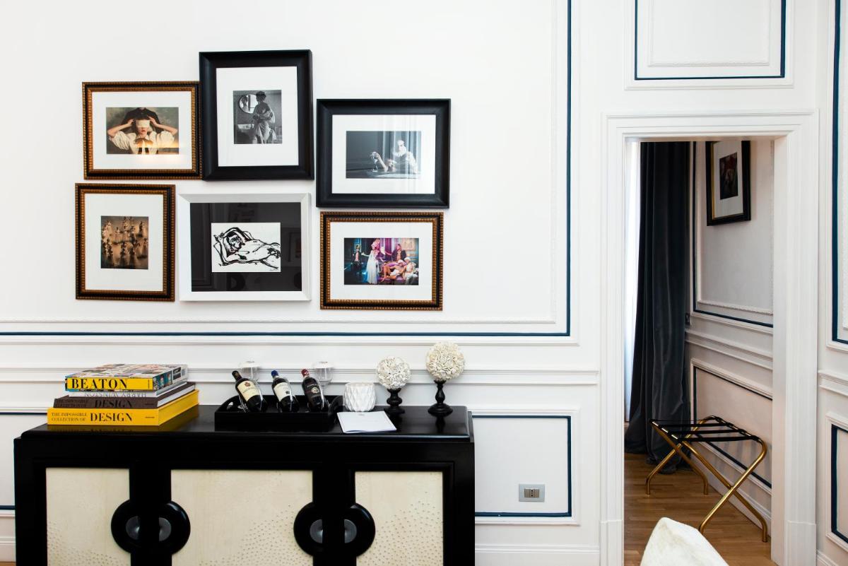 L’hôtel propose 34 chambres et suites luxueuses, décorées avec de beaux parquets, du marbre et des touches de design contemporain. Chaque logement est équipé de la climatisation, d’une TV à écran plat (avec chaînes Sky gratuites), d’un minibar avec boissons gratuites et du WiFi gratuit dans toutes les zones. Les salles de bain privées sont complètes avec des produits de toilette de marque Acqua di Parma. Certaines luxueuses Suites, comme la Suite Deluxe avec Jardin Privé et la Suite Royale, comprennent une baignoire à immersion totale, un coin salon séparé et, dans certains cas, une piscine privée à usage exclusif.