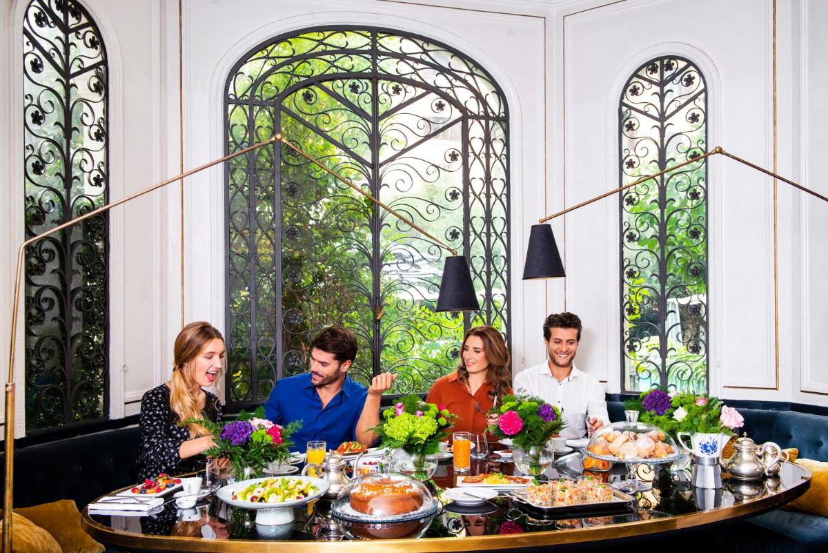 L’offre gastronomique comprend le restaurant L’Autre Dame, qui propose une cuisine raffinée méditerranéenne, ouvert pour le petit-déjeuner, le déjeuner et le dîner. Un copieux petit-déjeuner continental buffet avec des plats sucrés et salés, y compris des plats cuisinés sur demande, est servi tous les matins. Pour le bien-être, le DAHAM Health & Beauty SPA est disponible (payant), un centre d’environ 200 m² offrant des traitements holistiques, des massages, un sauna et un bain turc (l’entrée est interdite aux moins de 16 ans). Les services supplémentaires comprennent une réception ouverte 24h/24, un parking surveillé (payant) ou un service de voiturier, la location de vélos et un service de navette aéroport payant. Les petits animaux domestiques sont acceptés avec un supplément.