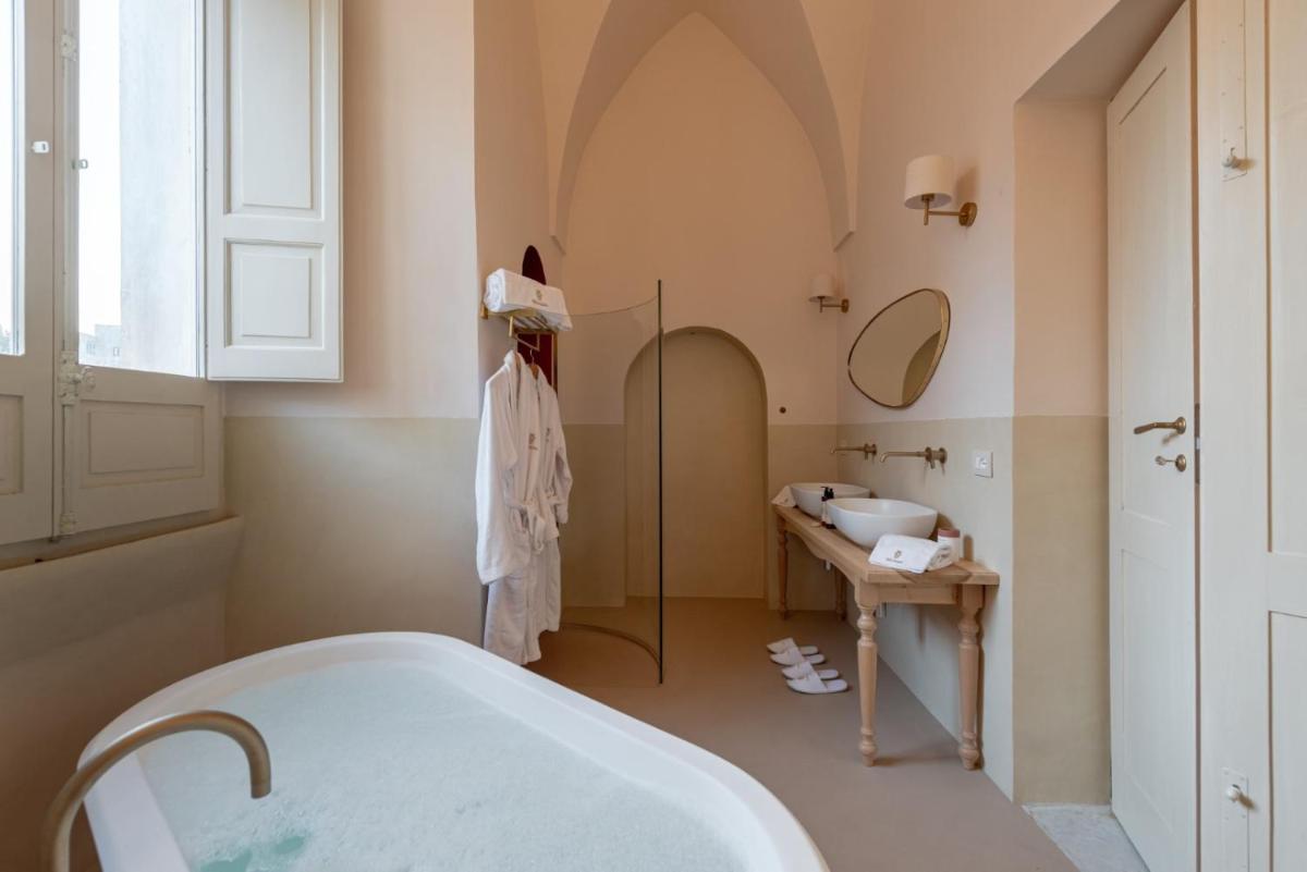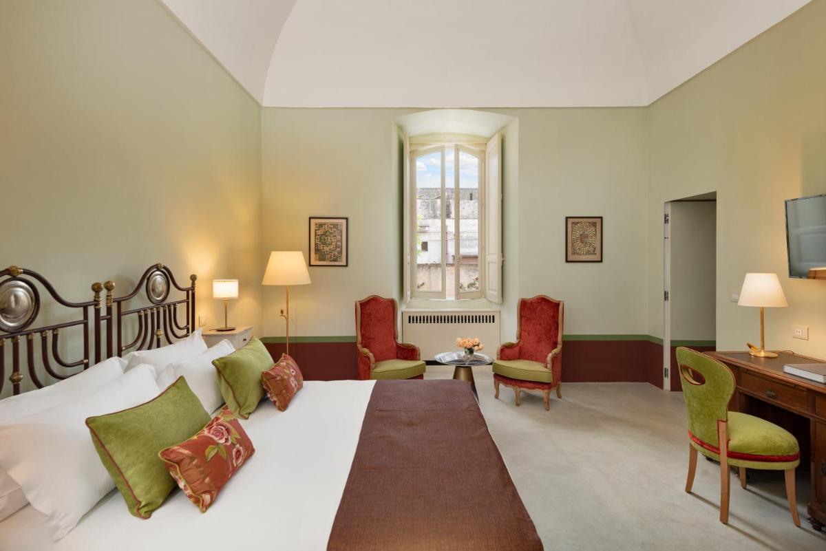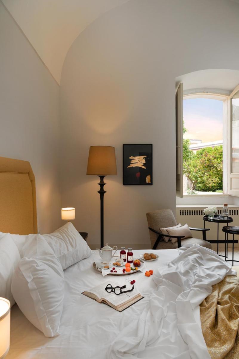 Les suites et les chambres, élégamment meublées, rappellent l'histoire de la demeure à travers des voûtes en pierre et des détails originaux, complétés par des conforts de dernière génération. Chaque hébergement comprend la climatisation, le Wi-Fi gratuit, un minibar et des salles de bains privatives luxueuses. Les vues offrent des aperçus suggestifs sur la vieille ville ou sur la cour intérieure tranquille.