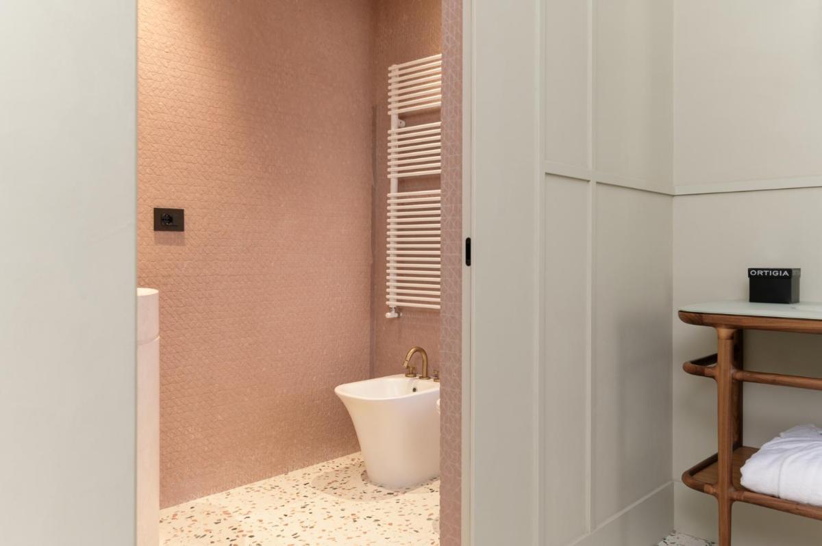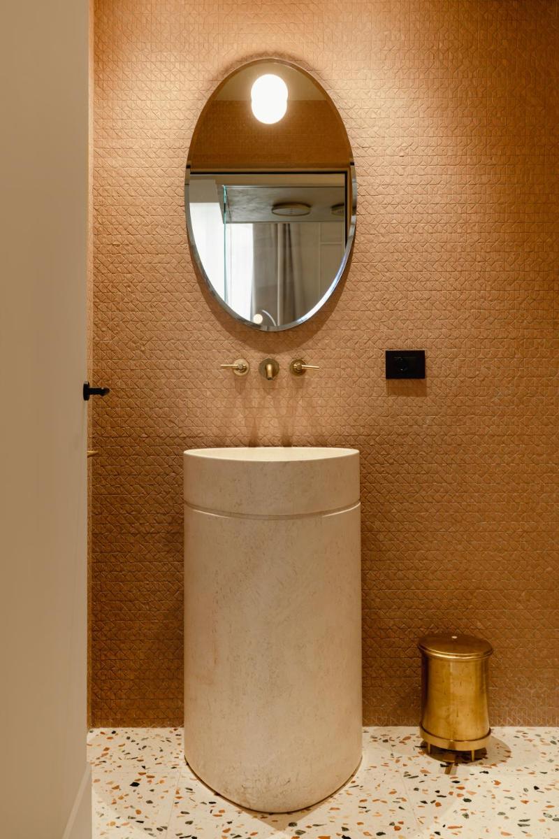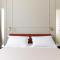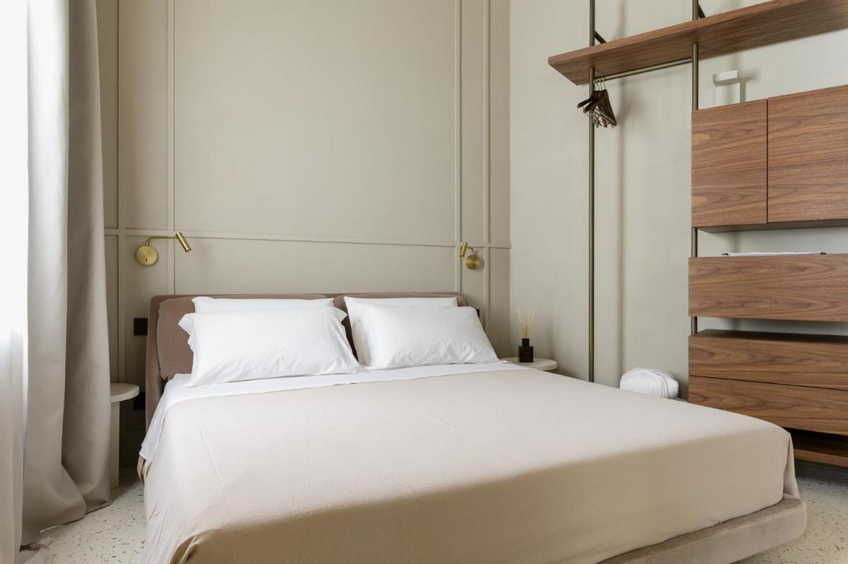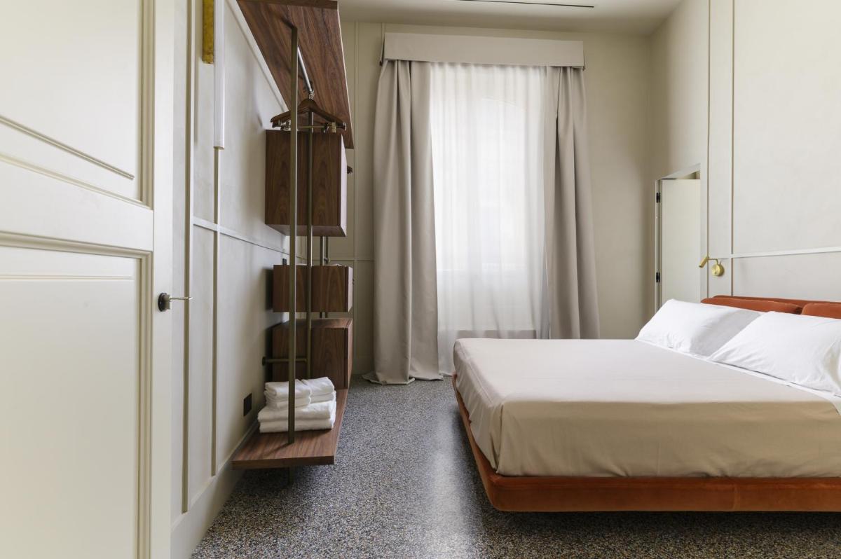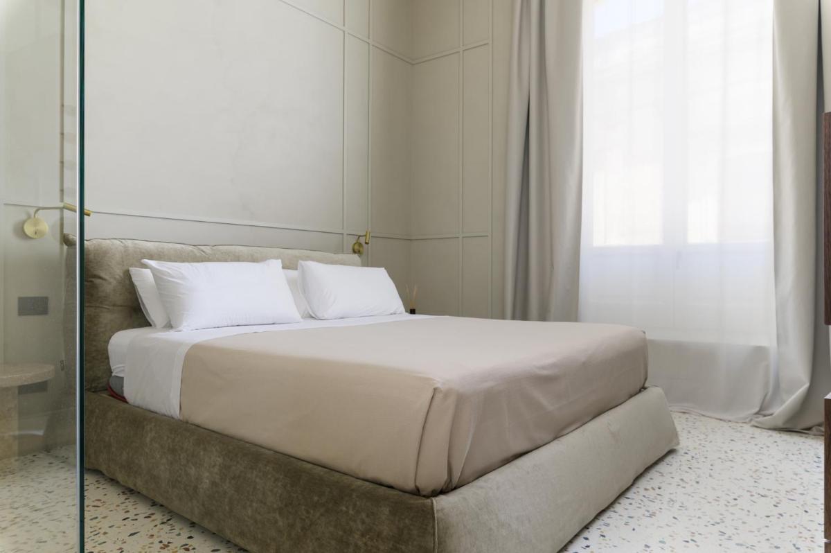Tons clairs, bois et textiles naturels composent des pièces mesurées en cohérence avec l’architecture originelle. Les vues changent au fil des heures — coupoles, clochers et perspectives urbaines mouvantes.