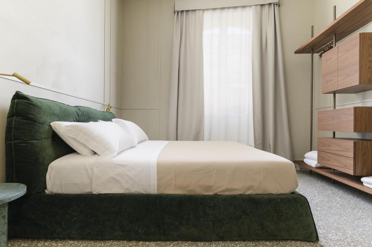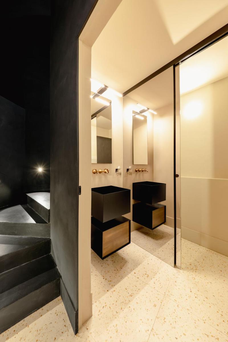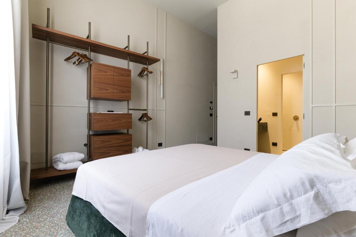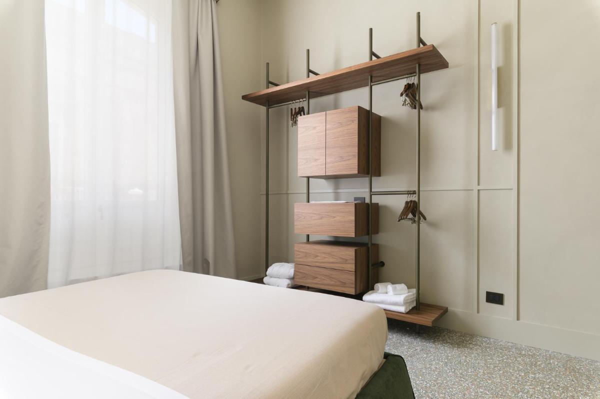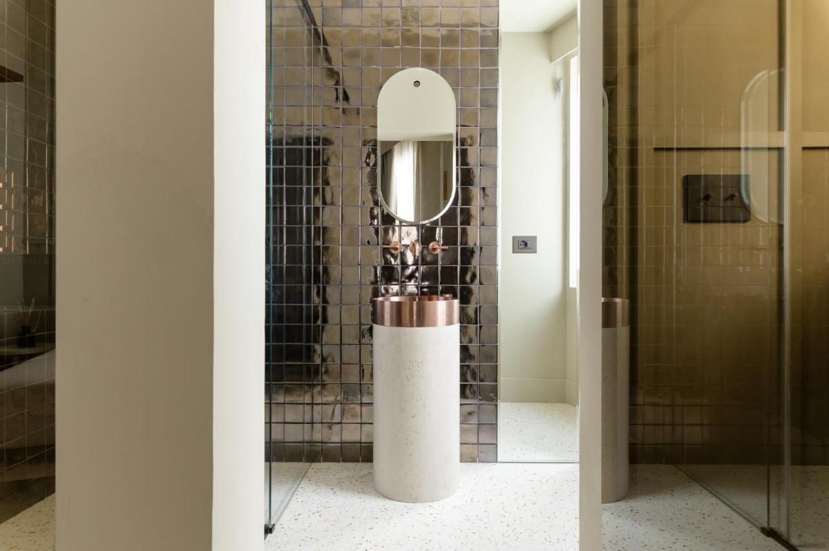 Tons clairs, bois et textiles naturels composent des pièces mesurées en cohérence avec l’architecture originelle. Les vues changent au fil des heures — coupoles, clochers et perspectives urbaines mouvantes.