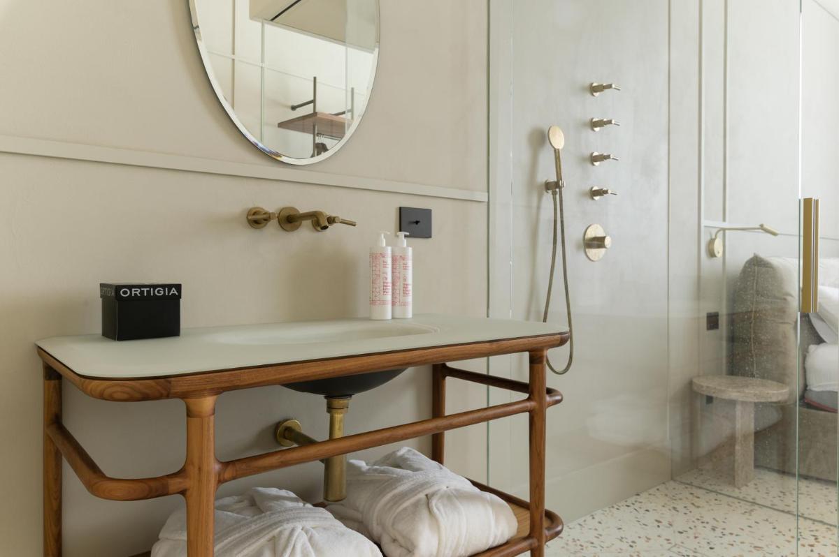 Dans le tissu ancien d’Ostuni, le Palazzo San Giuseppe retrouve la cadence des maisons historiques. La chaux blanche rencontre sols de pierre et encadrements essentiels ; des intérieurs ordonnés laissent la lumière s’installer. La journée se déroule entre escaliers, vues de toits et retours du soir quand le bourg s’apaise. La position permet d’explorer à pied ateliers, places et terrasses. Une hospitalité sobre, attentive aux matières et aux détails du lieu, privilégiant discrétion et mesure.