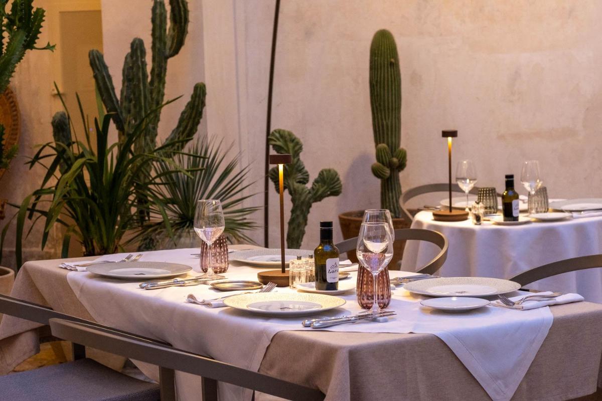 Le point fort du palais est sa Terrasse panoramique, idéale pour profiter du soleil des Pouilles et d'apéritifs au coucher du soleil. On y trouve également la Piscine extérieure, un élégant espace de détente entouré d'un solarium équipé. Le petit-déjeuner, riche et varié, propose des pâtisseries fraîches, des produits locaux et des spécialités du Salento, servi dans une salle évocatrice avec des voûtes en pierre.