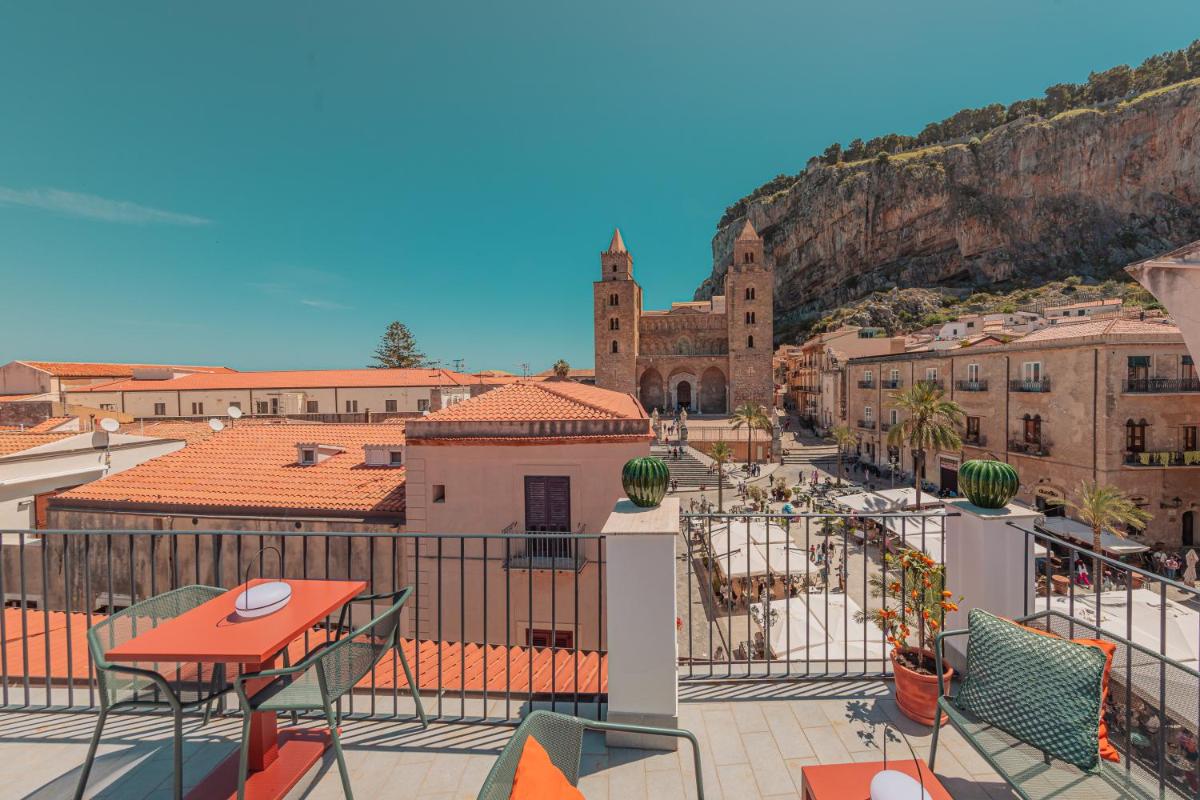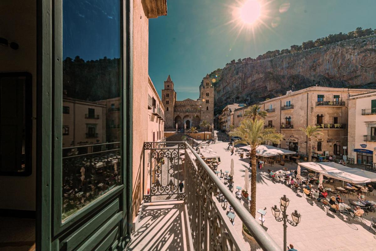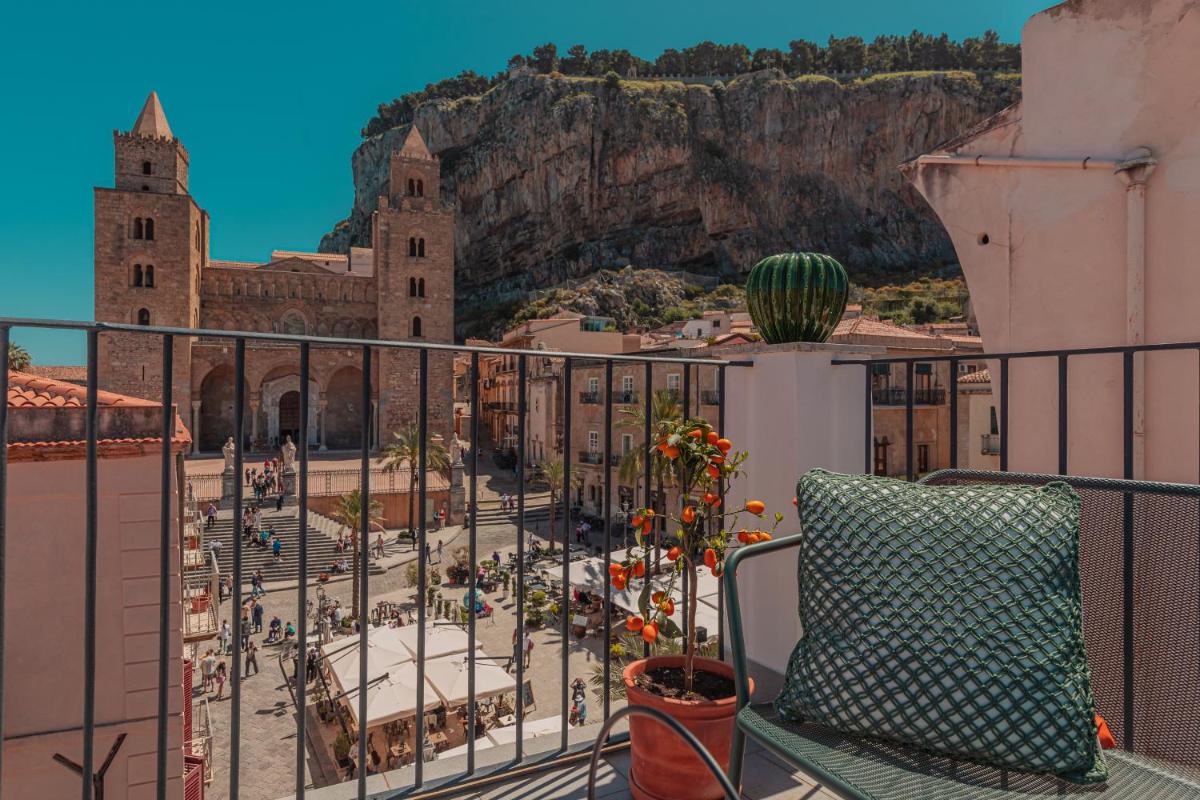 Entre la lumière du Tyrrhénien et l’ombre de la Rocca, Palazzo Villelmi garde des chambres intimistes, des escaliers patinés et des balcons tournés vers la mer—refuge de la vieille ville.