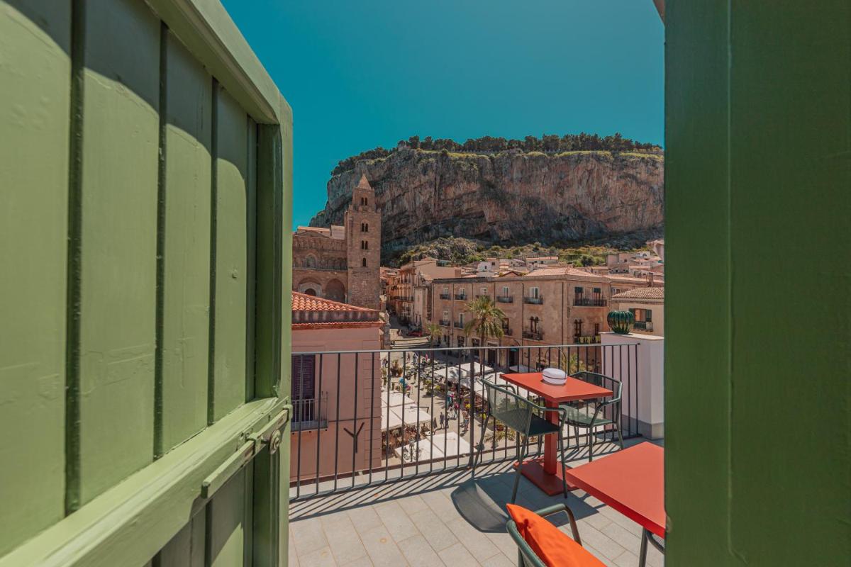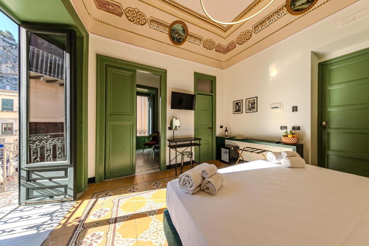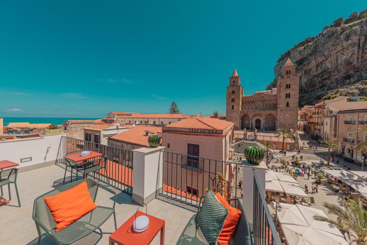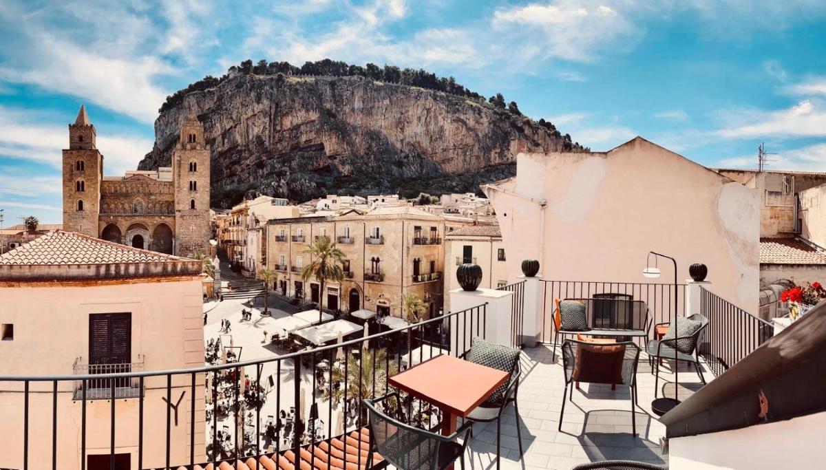 Entre la lumière du Tyrrhénien et l’ombre de la Rocca, Palazzo Villelmi garde des chambres intimistes, des escaliers patinés et des balcons tournés vers la mer—refuge de la vieille ville.