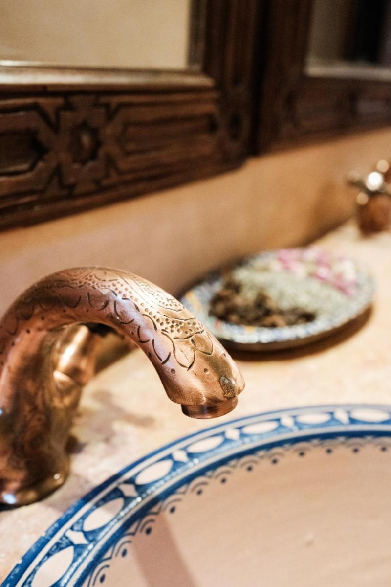 Le Riad est un exemple bien conservé de l'architecture traditionnelle de Fès, avec sa cour centrale (patio) ornée de fontaines, de carreaux de Zellige complexes et de bois de cèdre sculpté. L'atmosphère est intime et permet aux hôtes de s'immerger complètement dans la culture locale.
