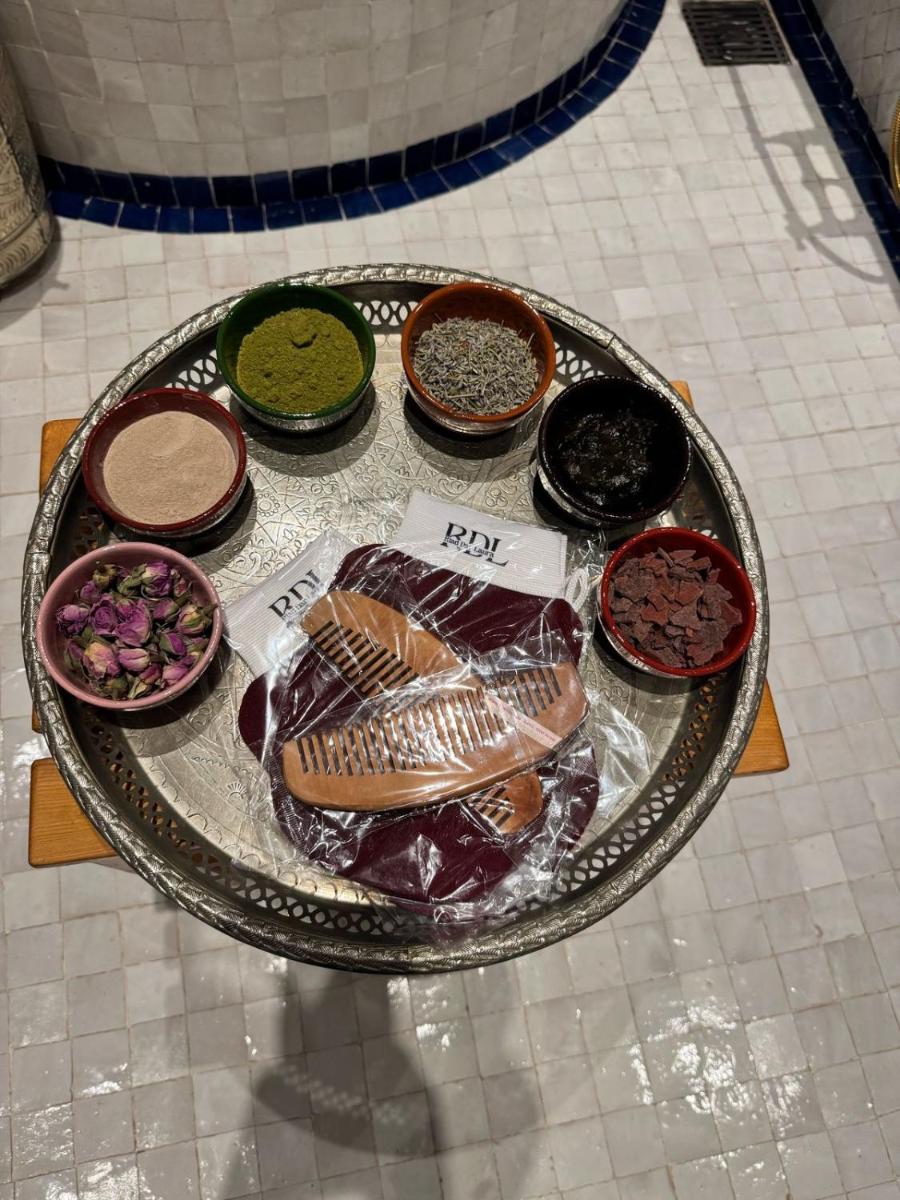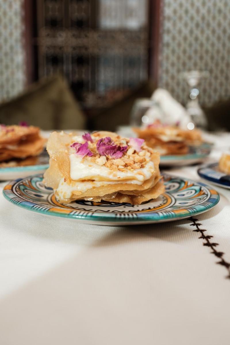 La terrasse sur le toit offre une vue exceptionnelle sur les toits de la Médina, idéale pour se détendre au coucher du soleil ou savourer un petit-déjeuner traditionnel. Le Riad est également apprécié pour sa cuisine maison, offrant aux hôtes d'authentiques plats marocains préparés avec des produits frais locaux.