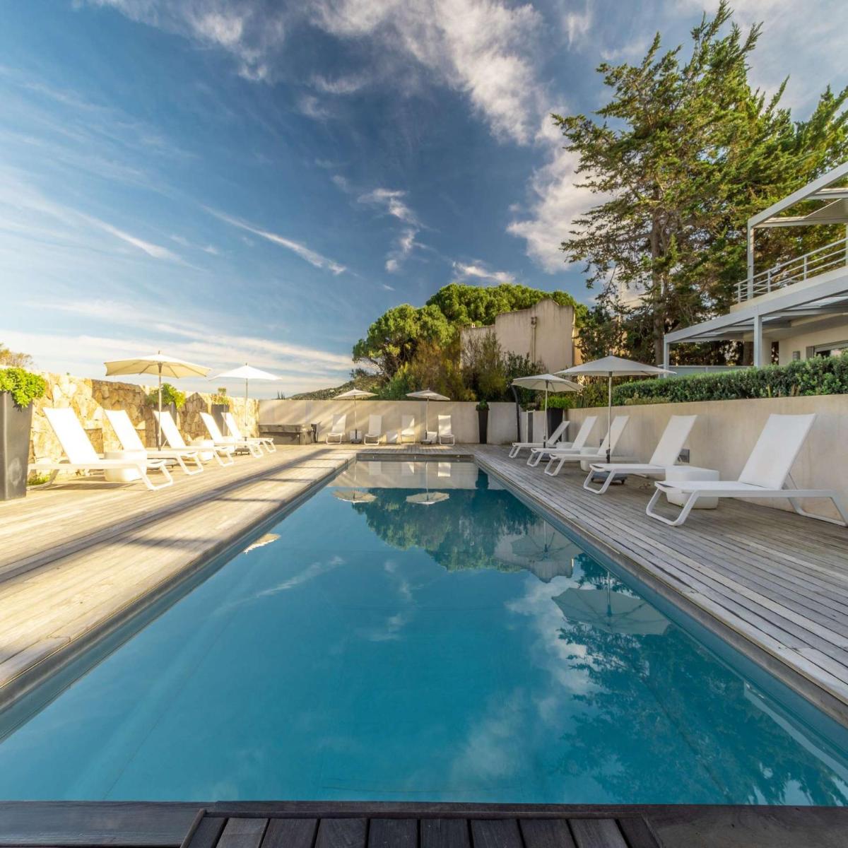 La résidence dispose d'un espace extérieur dédié à la détente, avec une magnifique piscine extérieure chauffée à la disposition des hôtes, parfaite pour nager en toute saison. De plus, un jacuzzi partagé sur la terrasse offre un point de vue panoramique pour profiter du coucher de soleil et de moments de pur bien-être et de contemplation.