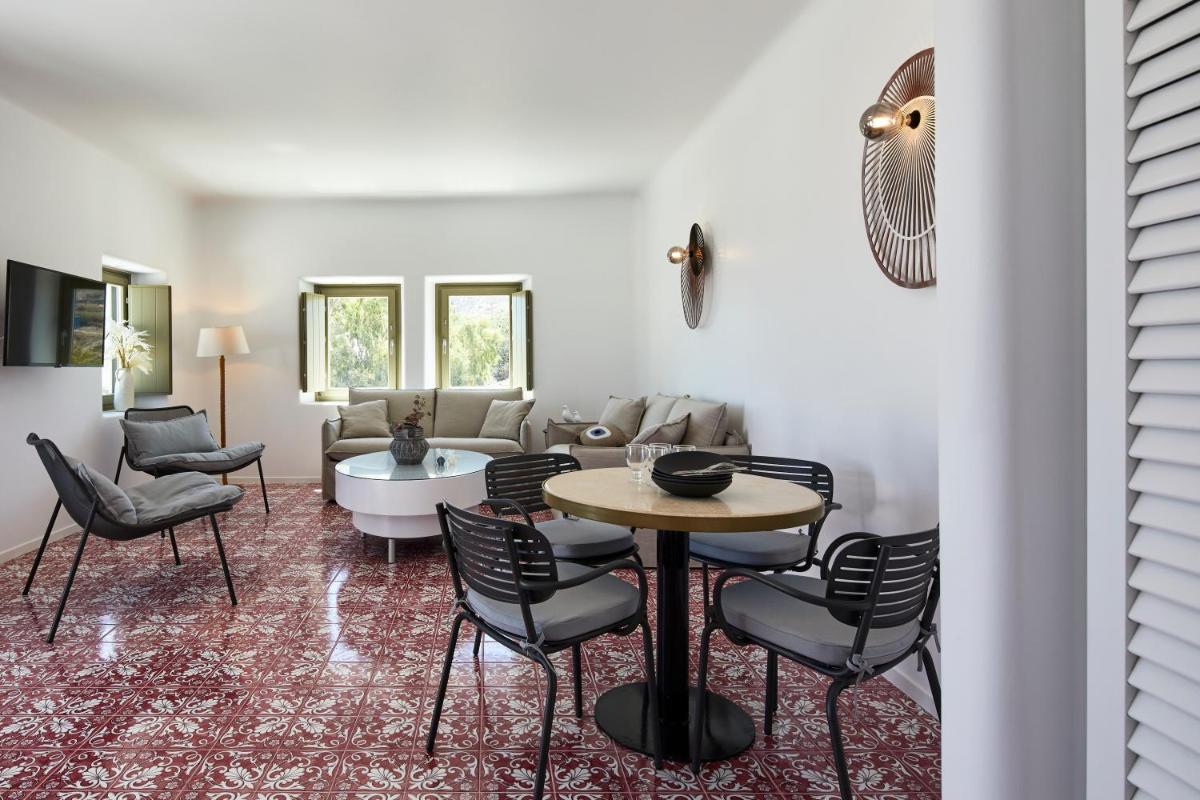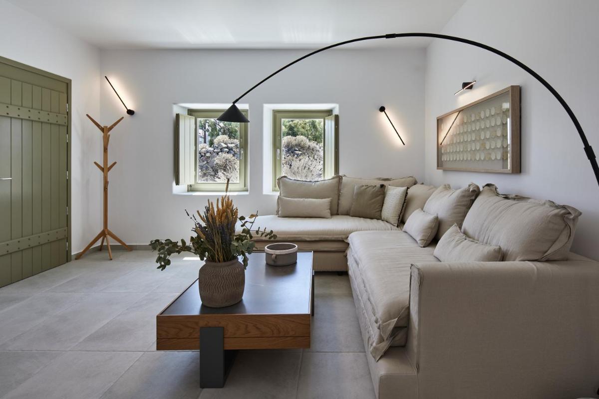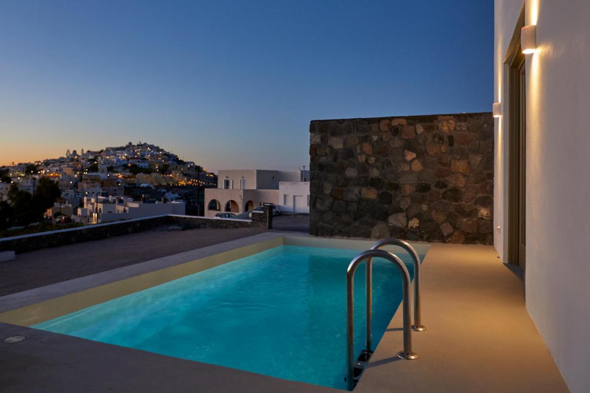 Chaque suite ou villa est conçue comme une oasis privée. De nombreuses unités comprennent un jacuzzi privé ou un petit bassin sur le balcon ou la terrasse, d'où profiter de vues inoubliables. La piscine commune à débordement complète l'offre, offrant un point de vue panoramique à couper le souffle sur l'Égée.