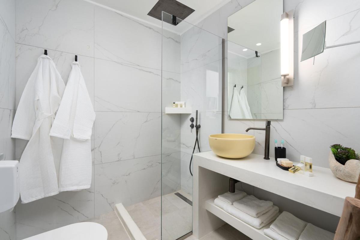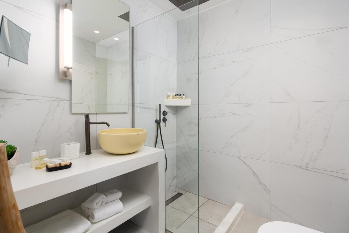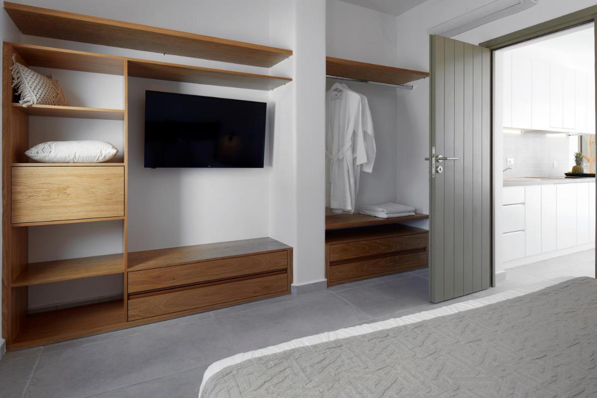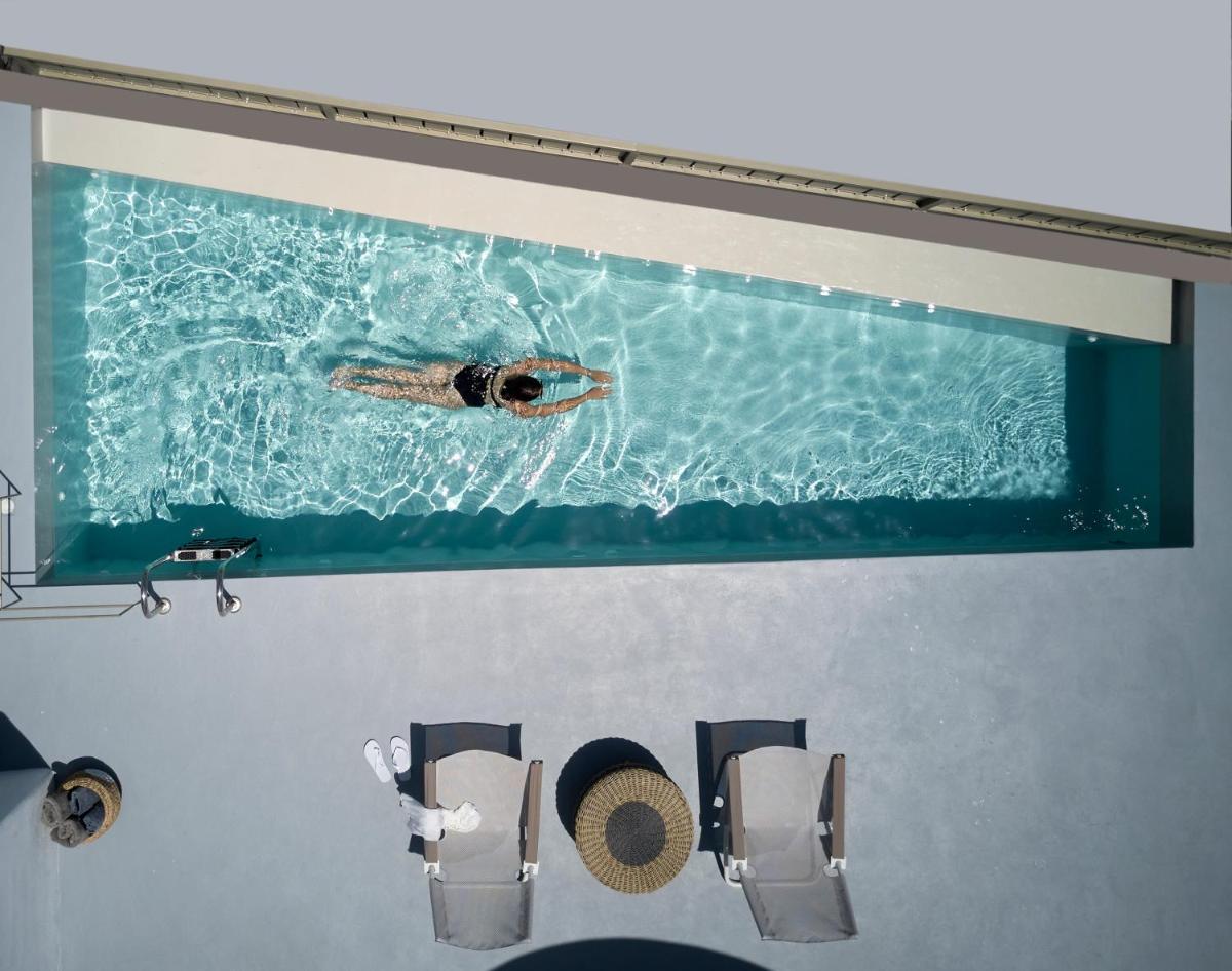 Chaque suite ou villa est conçue comme une oasis privée. De nombreuses unités comprennent un jacuzzi privé ou un petit bassin sur le balcon ou la terrasse, d'où profiter de vues inoubliables. La piscine commune à débordement complète l'offre, offrant un point de vue panoramique à couper le souffle sur l'Égée.