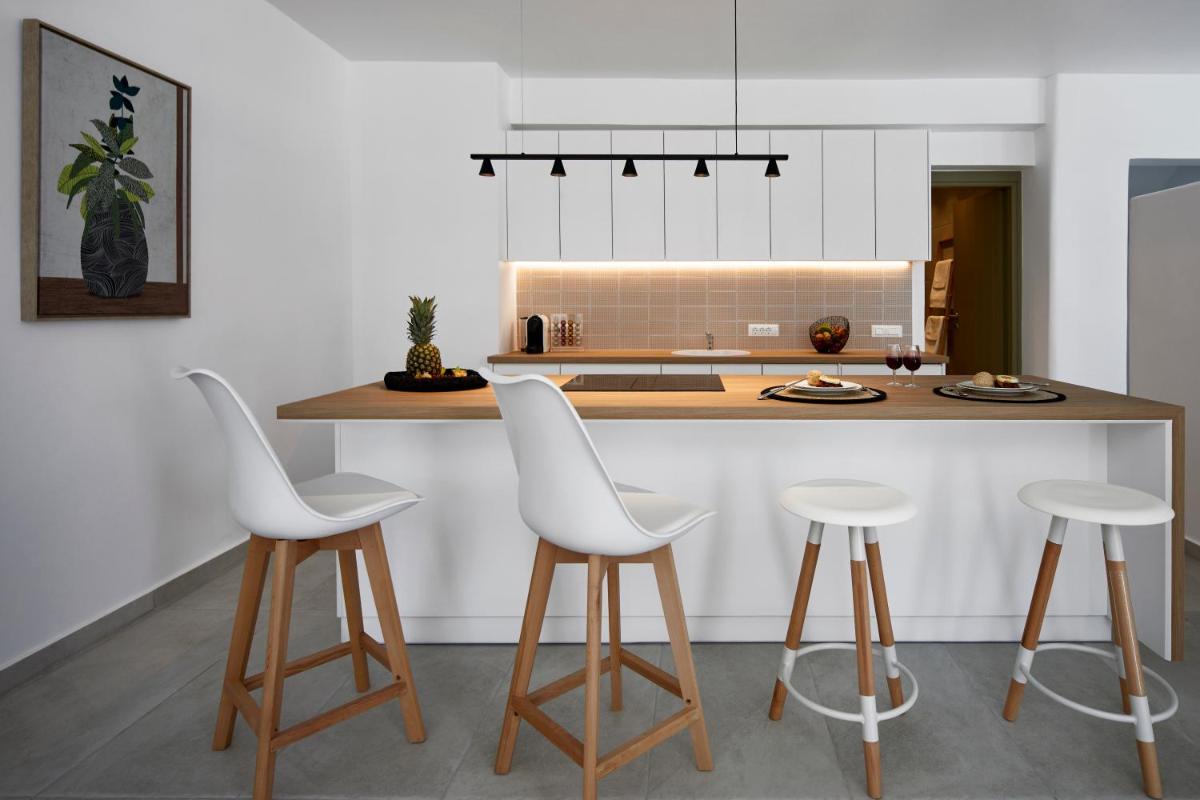 Bien qu'il propose un hébergement de style aparthotel, l'établissement fournit des services de petit-déjeuner personnalisés servis en chambre. La proximité du village de Pyrgos permet aux hôtes d'explorer la gastronomie locale grecque, avec ses tavernes authentiques et ses vins volcaniques, célèbres dans le monde entier pour leur caractère unique.