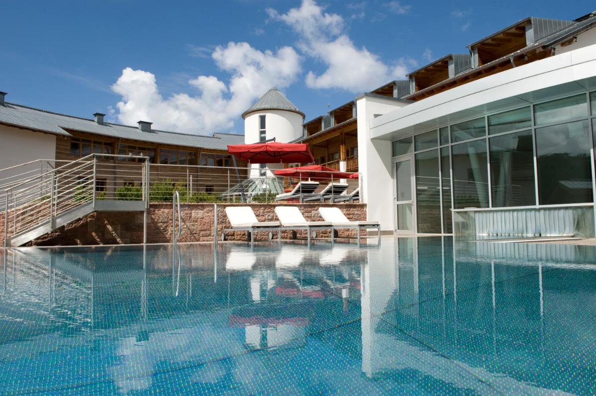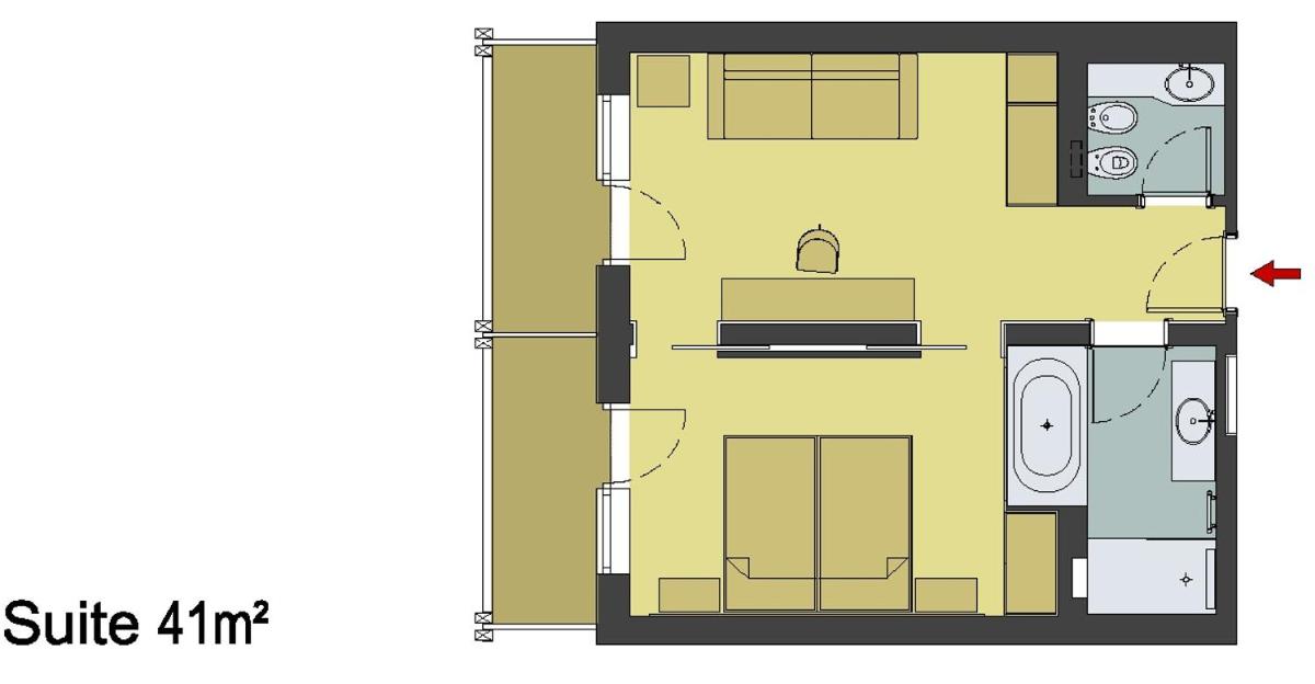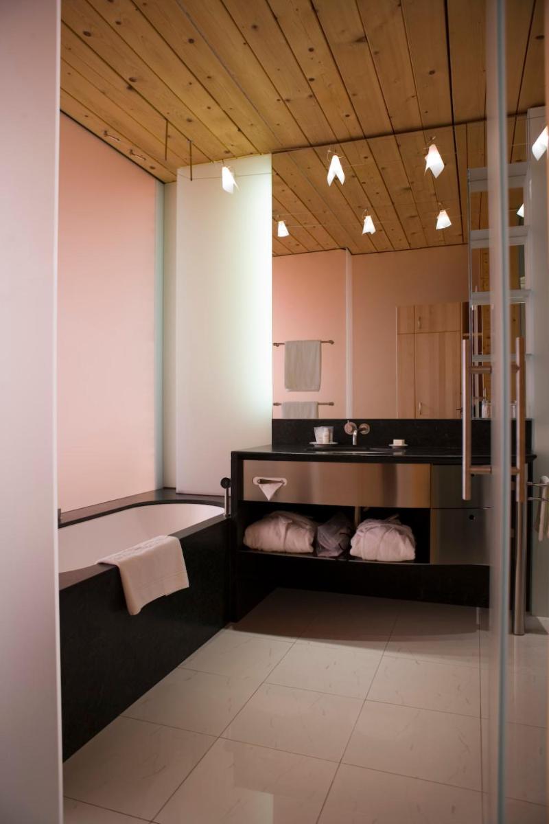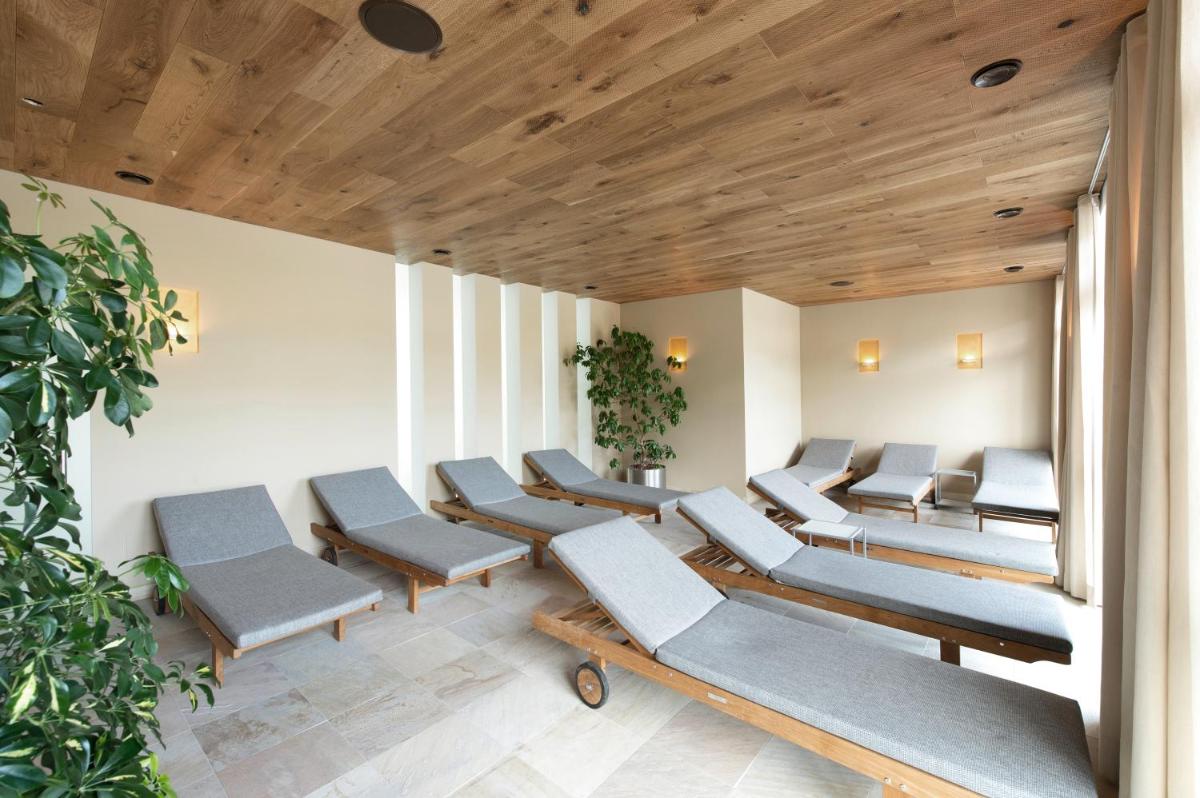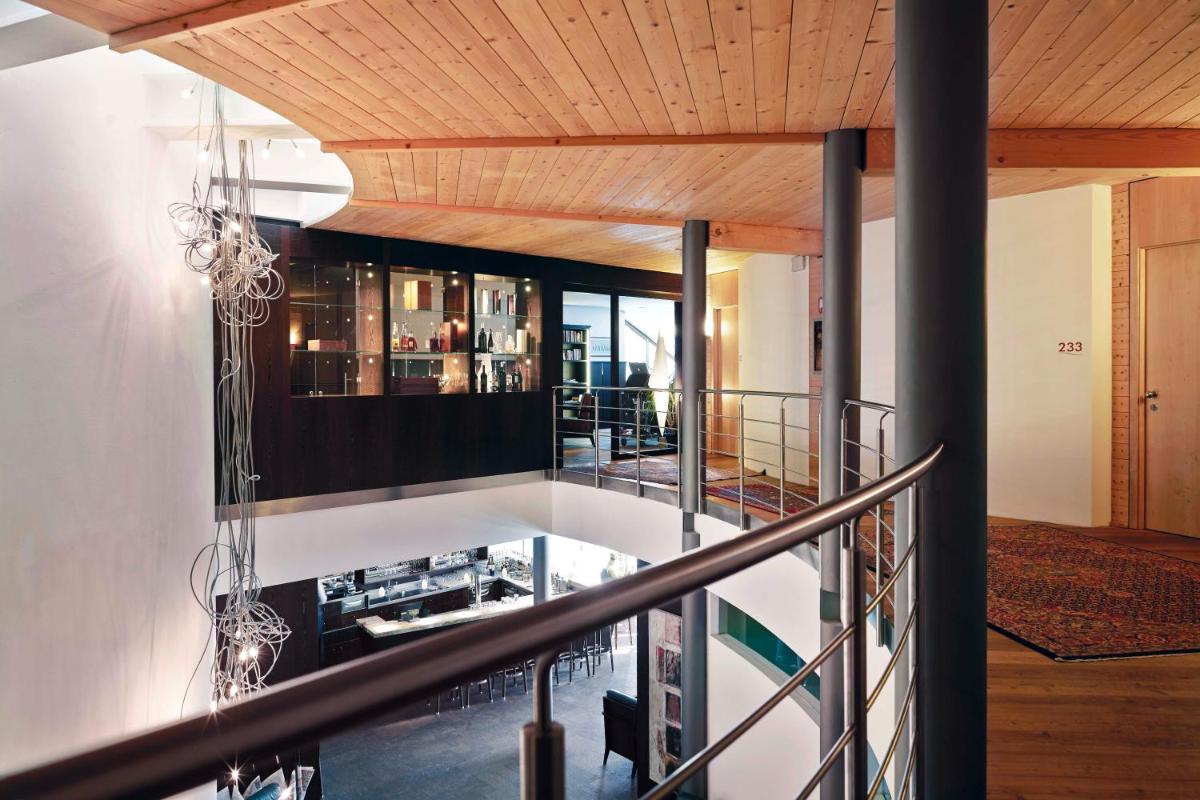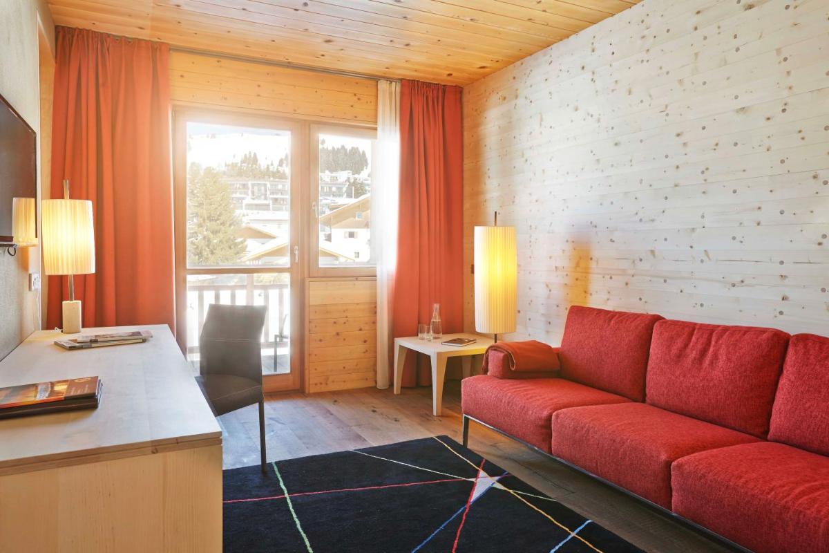 Les 63 chambres et suites reflètent la philosophie de l'hôtel, avec des murs, plafonds et planchers réalisés avec des poutres en bois massif jointes uniquement par des chevilles en bois, sans colle. Les hébergements sont spacieux et offrent des salles de bains privées modernes (souvent avec des parois en verre), baignoire, douche et bidet. Des grandes fenêtres et des balcons, les clients profitent de vues imprenables sur les Dolomites. Les Junior Suites et Suites, qui dépassent les 40 m², offrent des espaces de vie séparés et un design en bois pur.
