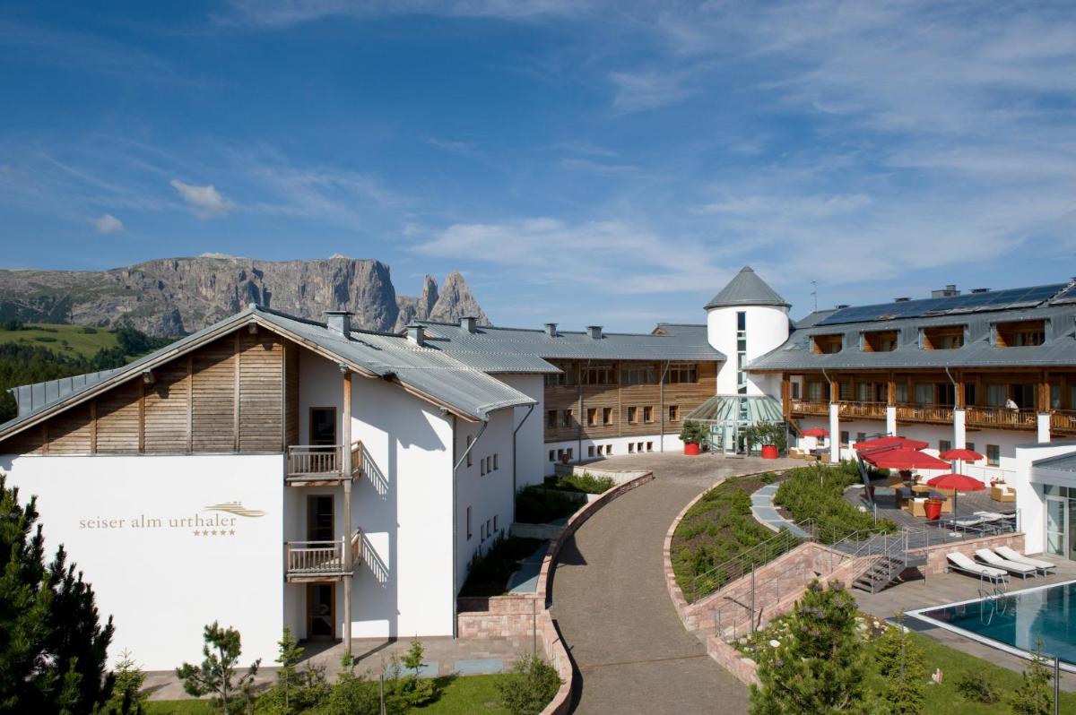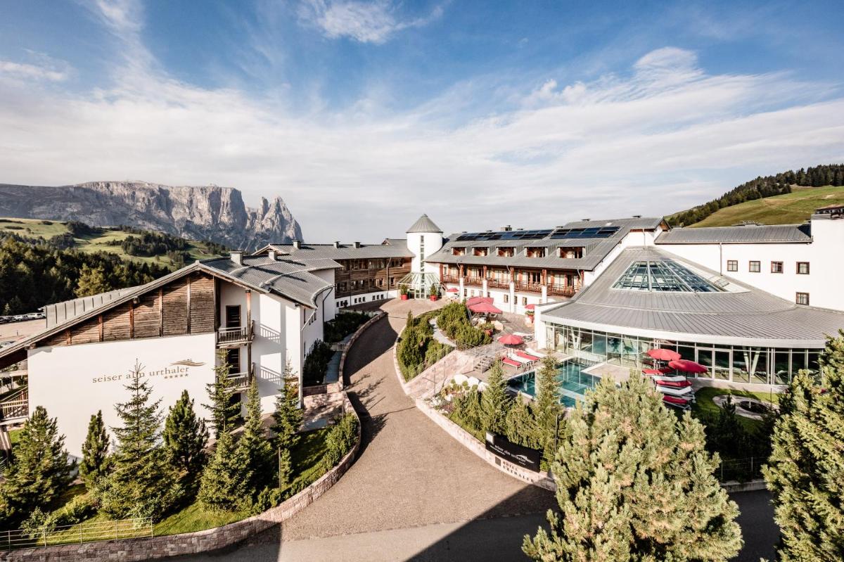 Le Seiser Alm Urthaler est un hôtel 5 étoiles exclusif situé à 1850 mètres d'altitude, sur l'Alpe di Siusi (Seiser Alm). Unique en son genre, c'est le premier hôtel des Alpes entièrement construit en bois massif non traité, suivant les principes de la bio-architecture. Cette philosophie de construction garantit un environnement sain, exempt de produits chimiques et de radiations, où l'arôme relaxant de l'épicéa et du mélèze favorise un sommeil profond et réparateur. La structure allie luxe, design nordique et un profond respect pour la nature environnante, classée au patrimoine mondial de l'UNESCO.