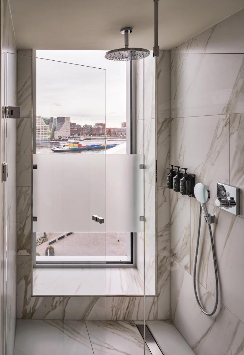 Cette chambre deluxe offre une vue sur la ville et surplombe la rivière IJ et le centre-ville d'Amsterdam. Vous disposerez de peignoirs de marque SIR, de chaussons et d'eau minérale gratuite.