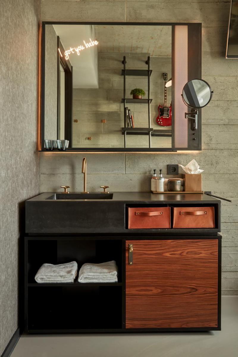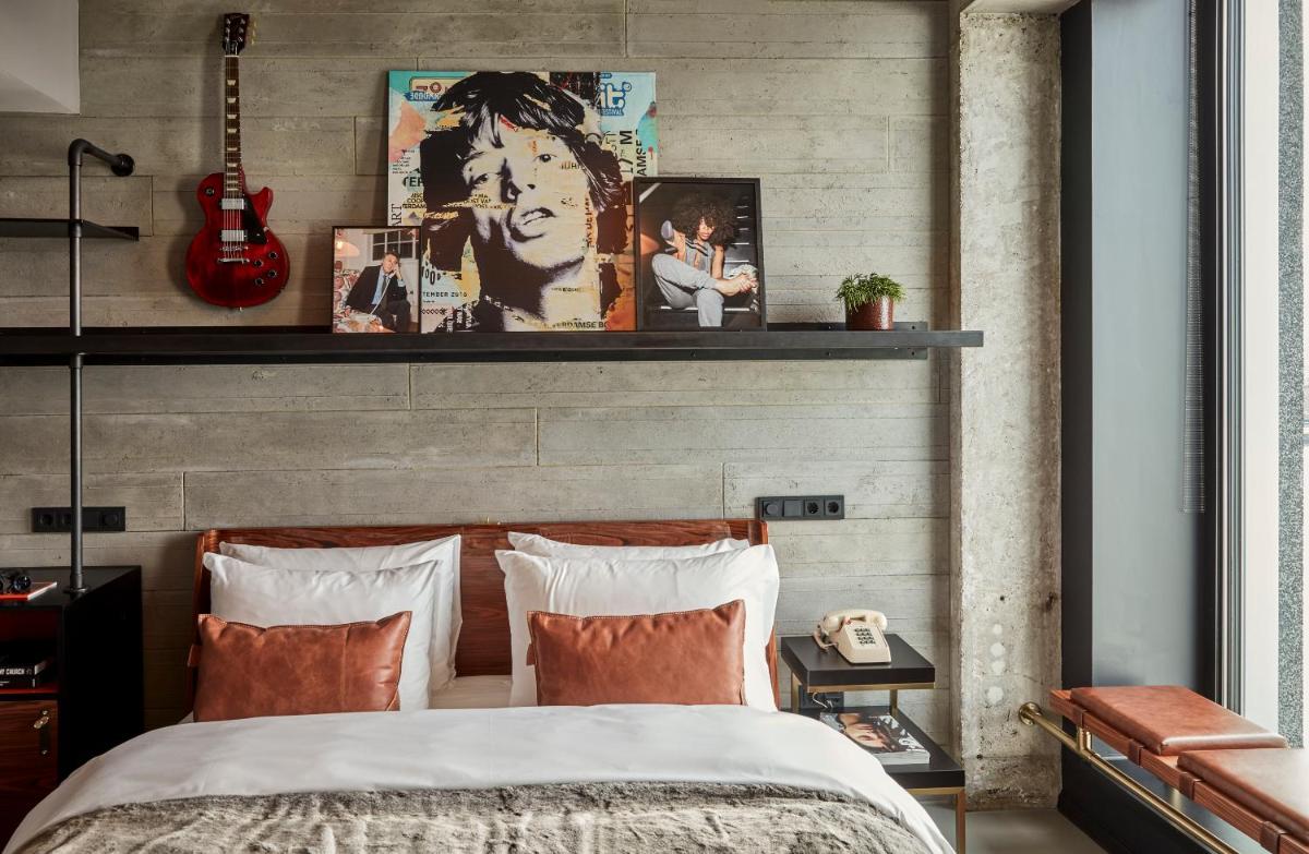 Le design intérieur est audacieux et jeune, avec un thème inspiré du rock 'n' roll. Chaque chambre est équipée d'une platine et d'une sélection de vinyles, soulignant l'amour pour la musique. Les chambres, bien que élégantes, offrent un confort de luxe et de grandes fenêtres qui encadrent le paysage urbain.
