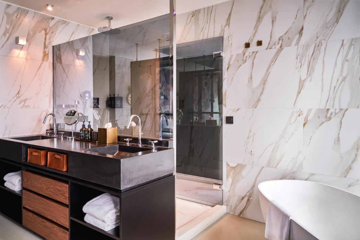Situé dans la Tour A'DAM, l'hôtel offre un accès direct à une série d'attractions, y compris la terrasse panoramique A'DAM Lookout et la balançoire la plus haute d'Europe. Le restaurant principal, The Butcher, est célèbre pour ses hamburgers gastronomiques, tandis que le bar 'The Hub' est un espace social animé proposant de la musique live et des sets de DJ.