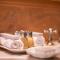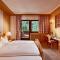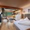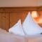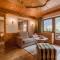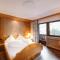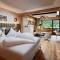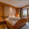 Les chambres et les suites sont décorées dans un style alpin traditionnel raffiné, utilisant du bois de pin cembro et des tissus de haute qualité. Elles offrent une atmosphère chaleureuse et accueillante, avec des balcons privés donnant sur le panorama spectaculaire des Alpes de Stubai. L'utilisation de matériaux naturels crée un environnement sain et reposant.
