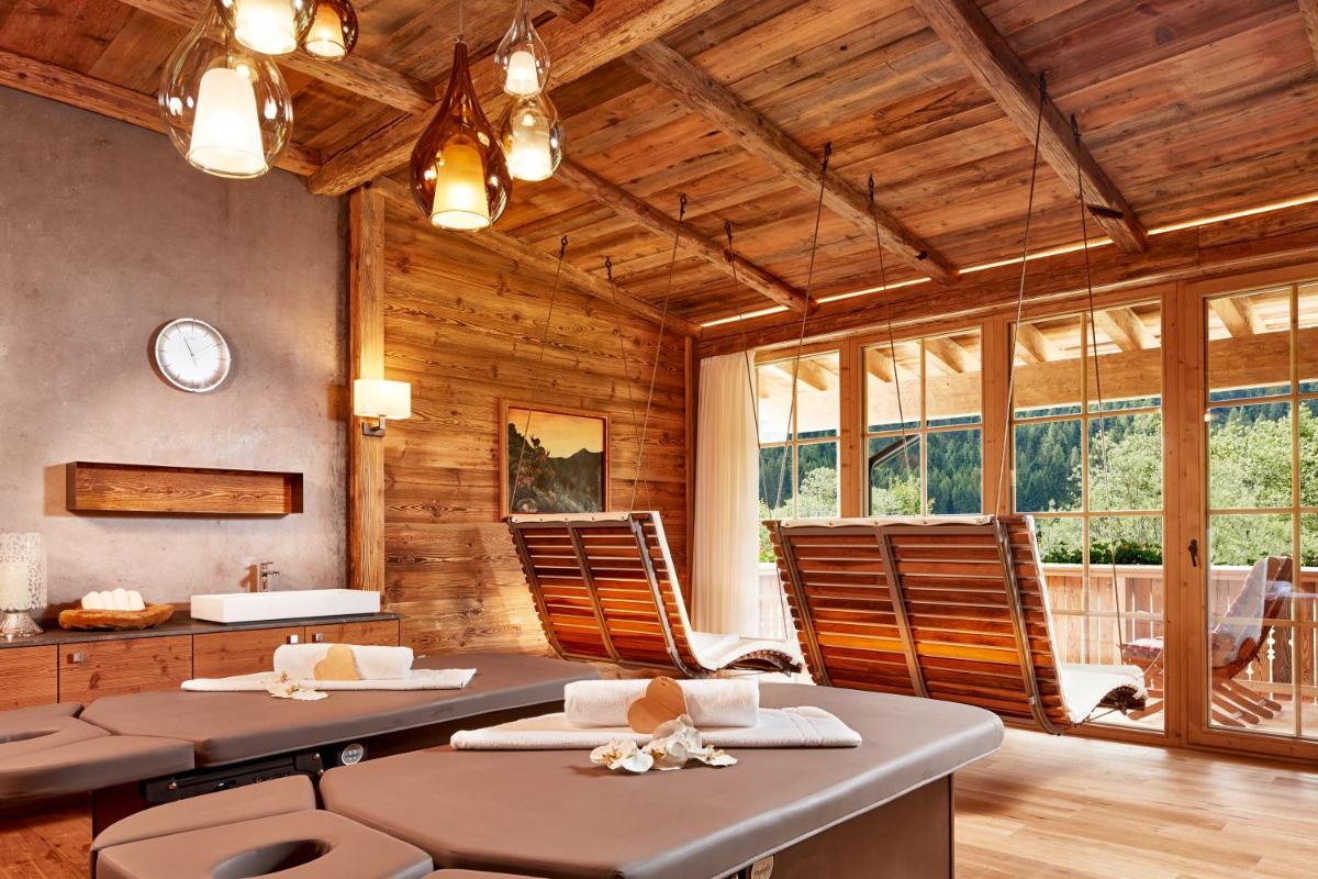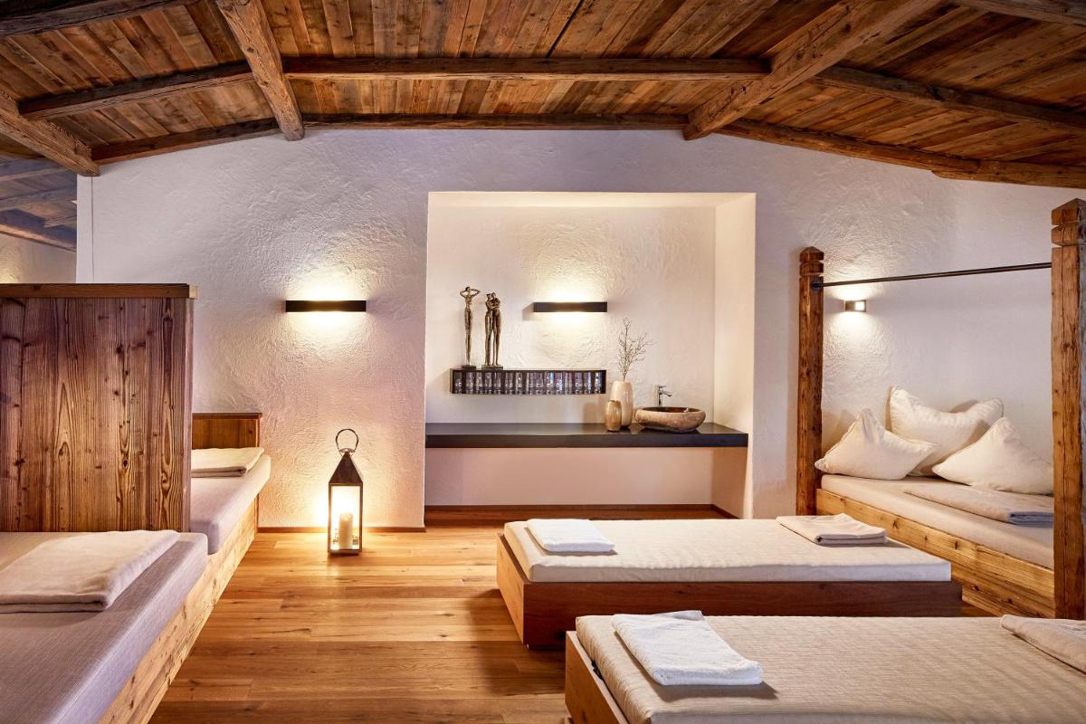 La réputation gastronomique de l'hôtel est excellente, avec un restaurant qui affiche des récompenses telles que 3 toques Gault&Millau. La cuisine célèbre les saveurs du Tyrol avec une touche d'élégance moderne, utilisant presque exclusivement des produits locaux et biologiques. La cave à vin abrite une vaste collection de vins fins, offrant des dégustations mémorables.
