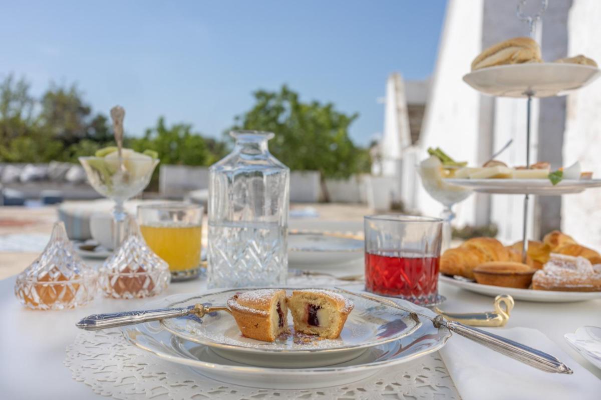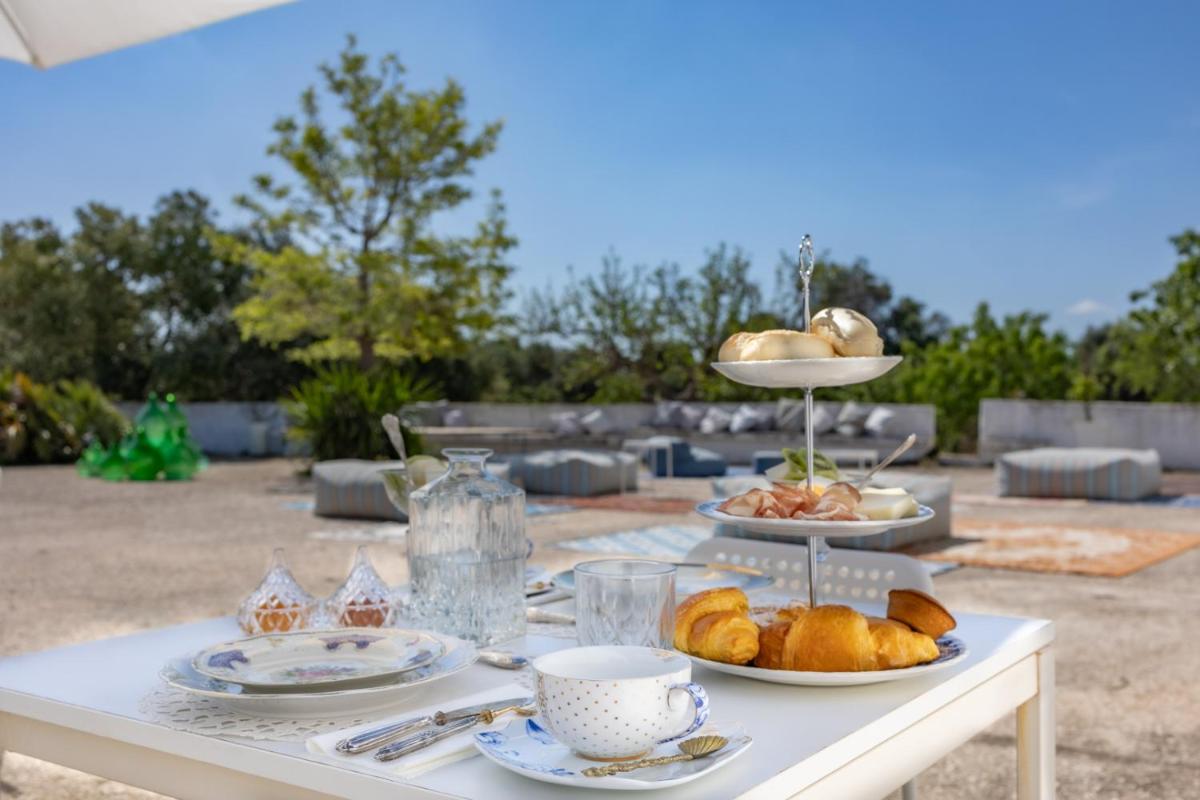 L'offre gastronomique célèbre les saveurs de la tradition des Pouilles. La journée commence par un riche Petit-déjeuner continental et italien, souvent servi en plein air, parmi les oliviers du jardin. La Tenuta offre également la possibilité de déguster des déjeuners et des Dîners (avec menus fixes ou à la carte) à base de spécialités régionales et d'ingrédients à kilomètre zéro dans son restaurant (ou coin repas extérieur), transformant chaque repas en une expérience culinaire inoubliable.