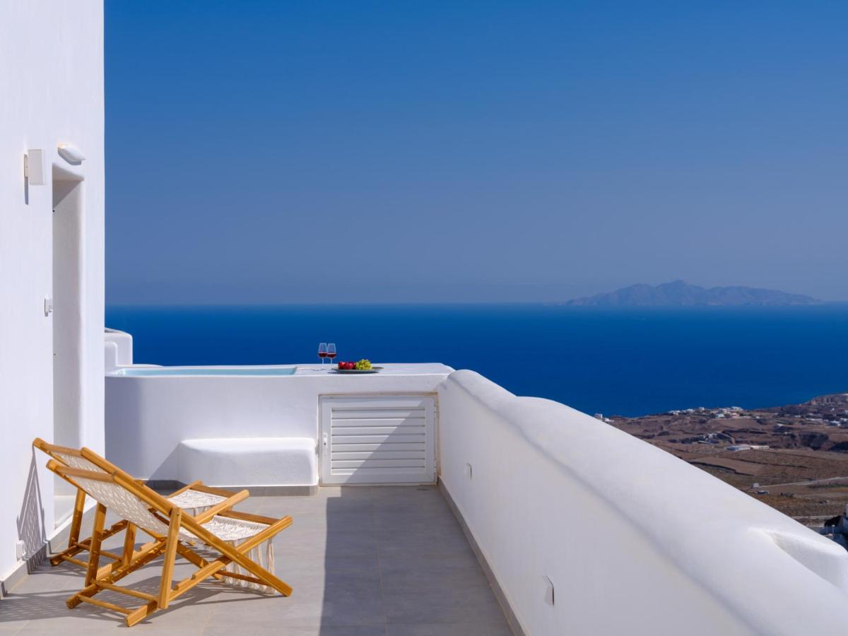 La majorité des suites disposent d'un jacuzzi privé extérieur ou d'un petit bassin avec vue directe et ininterrompue sur la Caldeira et la mer Égée. C'est l'endroit parfait pour des moments de romantisme absolu, surtout pendant le célèbre coucher de soleil de Santorin.